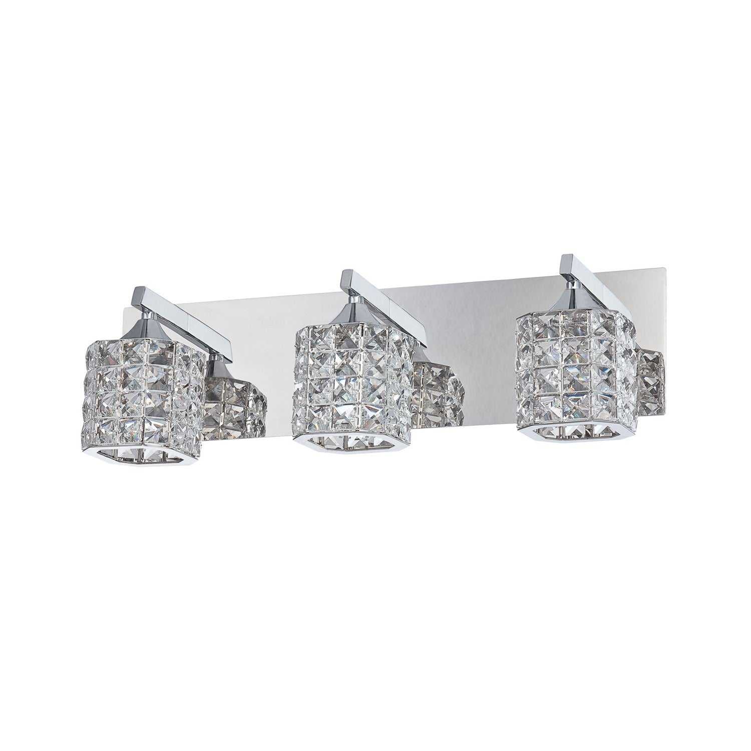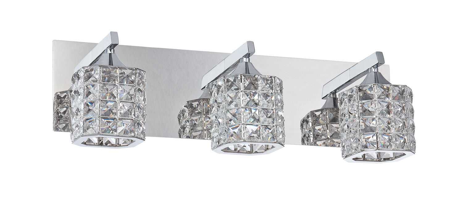 SHIMERA 3-light Bath & Vanity Light in a Chrome finish featuring cubic shades encrusted with Optic Crystal Jewels
