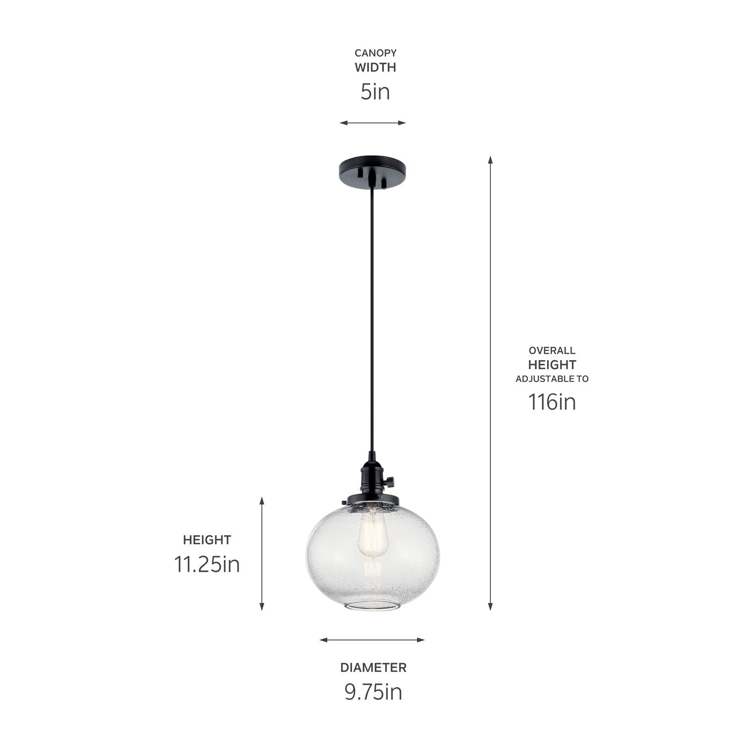 Offering convenience and ease in coordinating with other lighting options, the Avery 1 Light Mini Pendant is truly as versatile as it is beautiful. Its clear seeded glass provides a beautiful, ambient lighting to the entire room and is also easy to remove--for ease of cleaning and replacement. Its on-trend black finish creates a classic yet dramatic statement to any space while it complements a variety of decor, including industrial and farmhouse aesthetics.