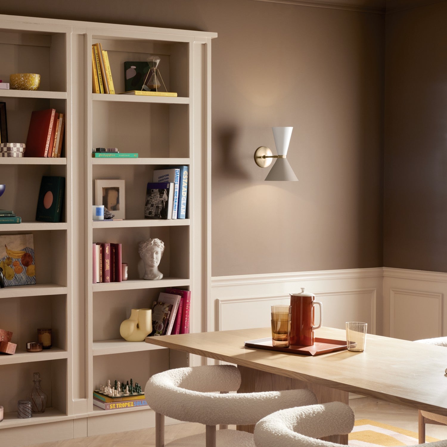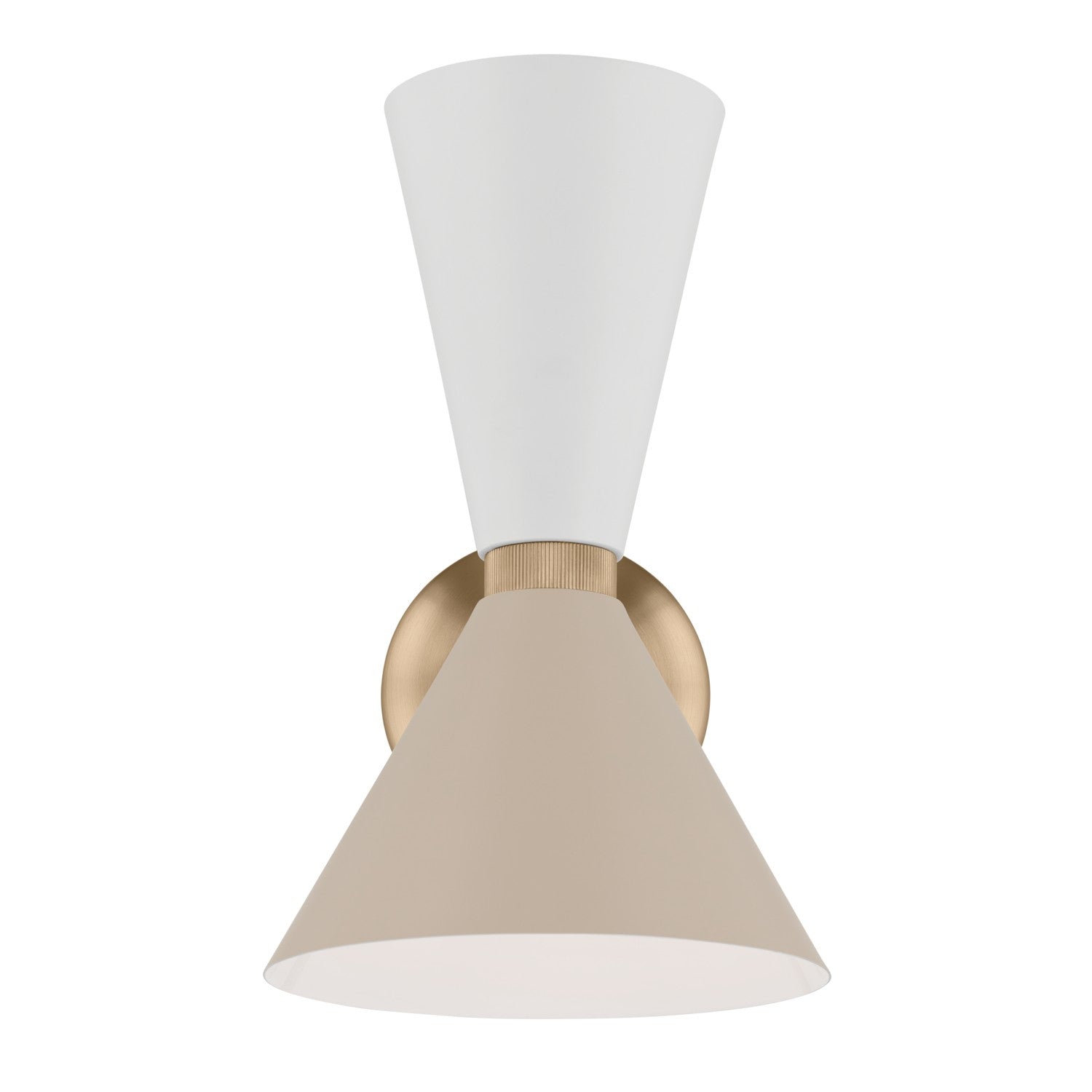 The Phix 2 light wall sconce lets you choose your look with the included greige and white shades that pivot as you wish. Light illuminates both up and down for a beautiful effect. With an elegant champagne bronze finish, Phix exudes a modern aesthetic that's edgy, yet livable.