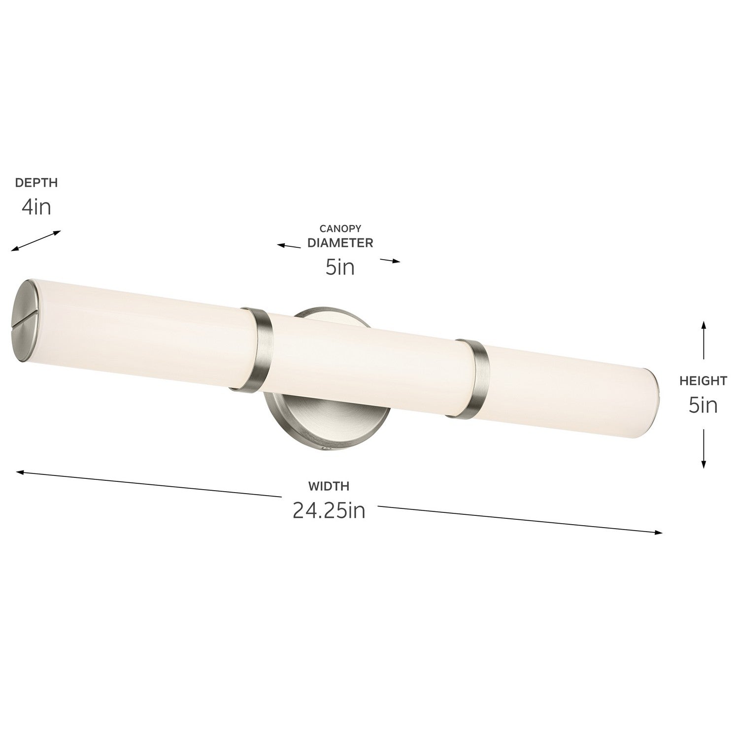 A simple design that's simply perfect for modern minimalist environments, the Rosh LED bar bath is as versatile as it is alluring. Its movable, adjustable bands allow you to choose the placement of its rings and its white glass shade casts a beautiful, even and glow throughout your room. Rosh's 5 CCT selectable technology feature gives you the option to change light temperature upon installation by selecting from five hues of white light, helping to reduce the guess work when planning. Simply remove the canopy to access the switch and select the desired color temperature for the room.