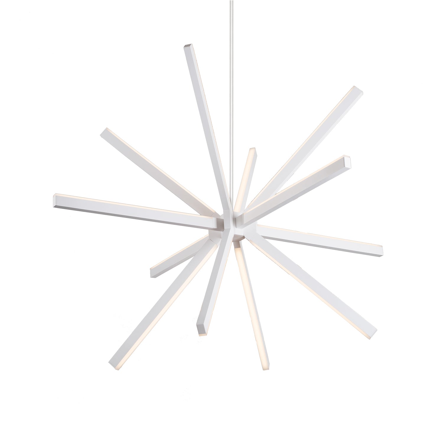 Sirius' array of elements emanate from a single point in a starburst of light. A visual statement that draws the eye as the burnished finish interplays with the light, revealing shifting highlights and shadows. Contemporary and decorative.