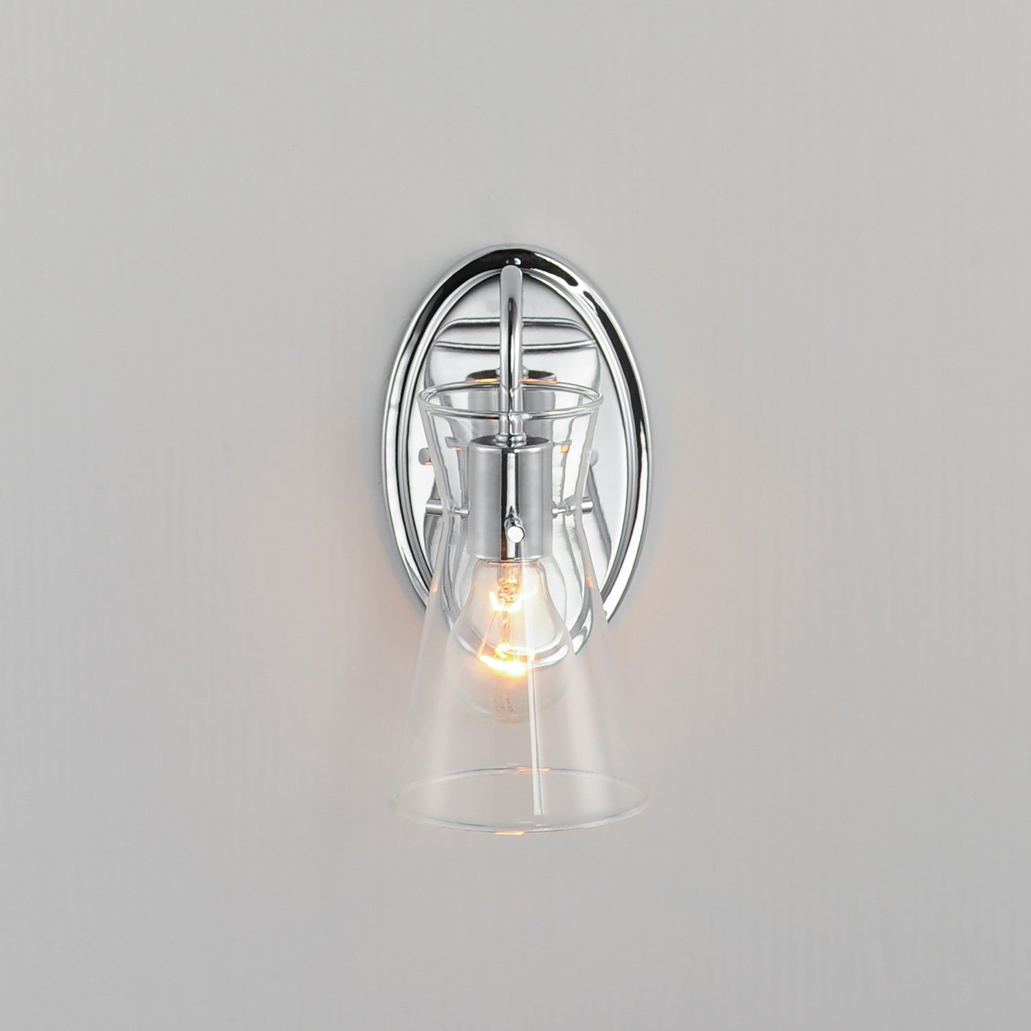 Suspended by three pin connections, the sharp silhouette of Ava's angular glass provides a designer look to enhance your bathroom design. Using Clear glass and a variety of complementary metal finishes the sconces are available in Black, Polished Chrome, or Natural Aged Brass allowing it to pair well with most interior color palettes.