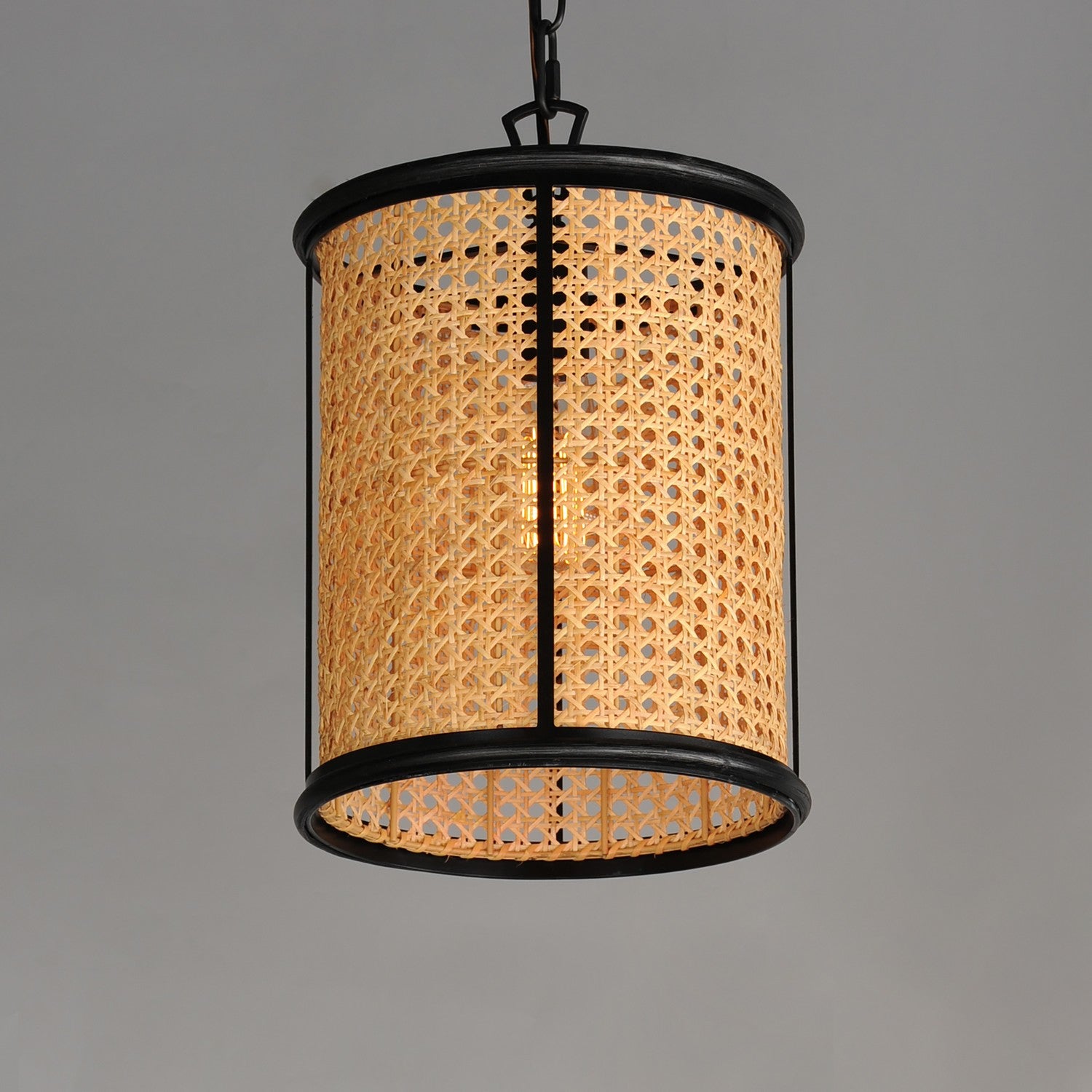 Experimenting with various materials for weaving and their technique, two iterations of a classic drum pendant were made using blackened rattan and cane wicker. The overall effect is nostalgic, coastal, and yet transitional with a variety of design aesthetics.