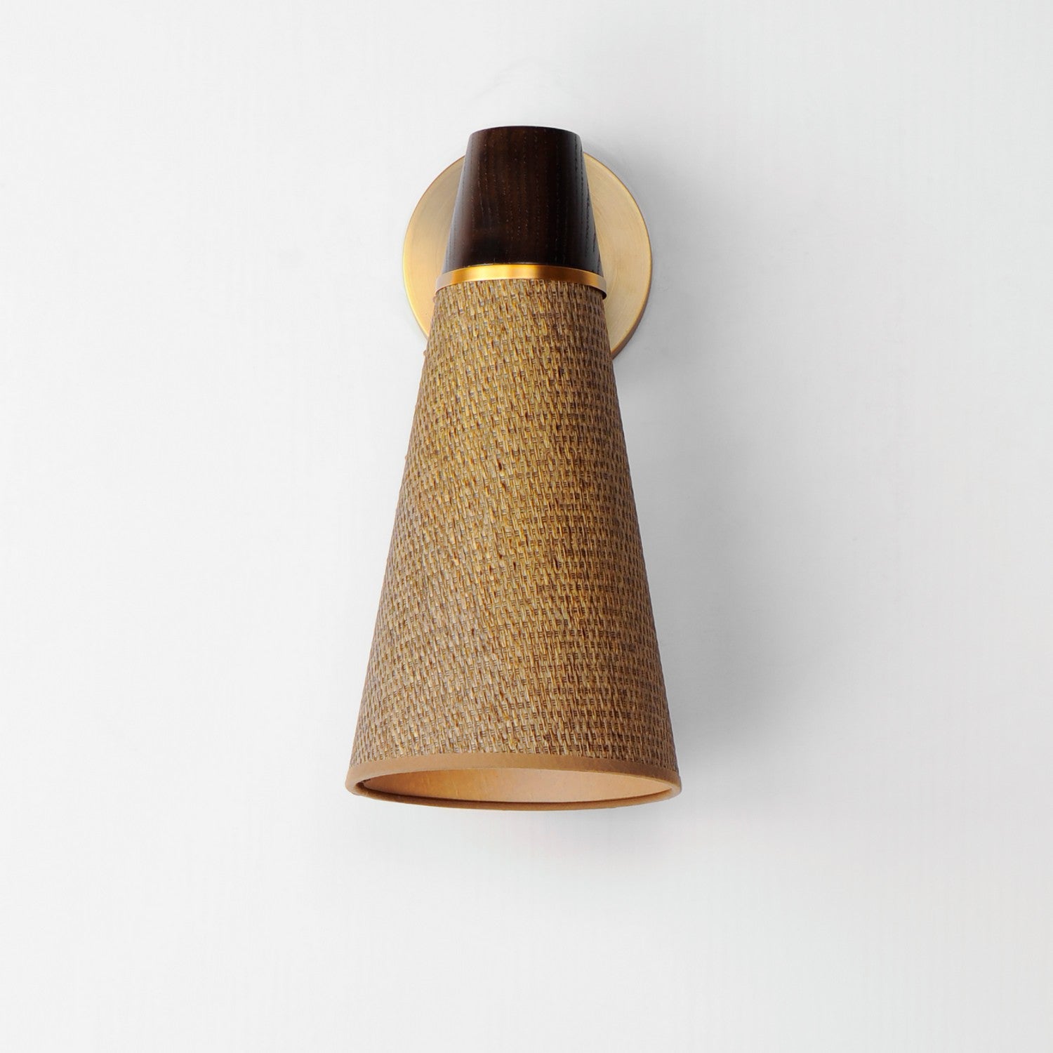 Stained Grass cloth shades are stitched with corresponding laces and suspended from solid wood housings trimmed with Natural Aged Brass. The combination of finishes and materials makes for a rich interpretation of the Coastal lighting trend and transports you to an island getaway wherever they are installed.