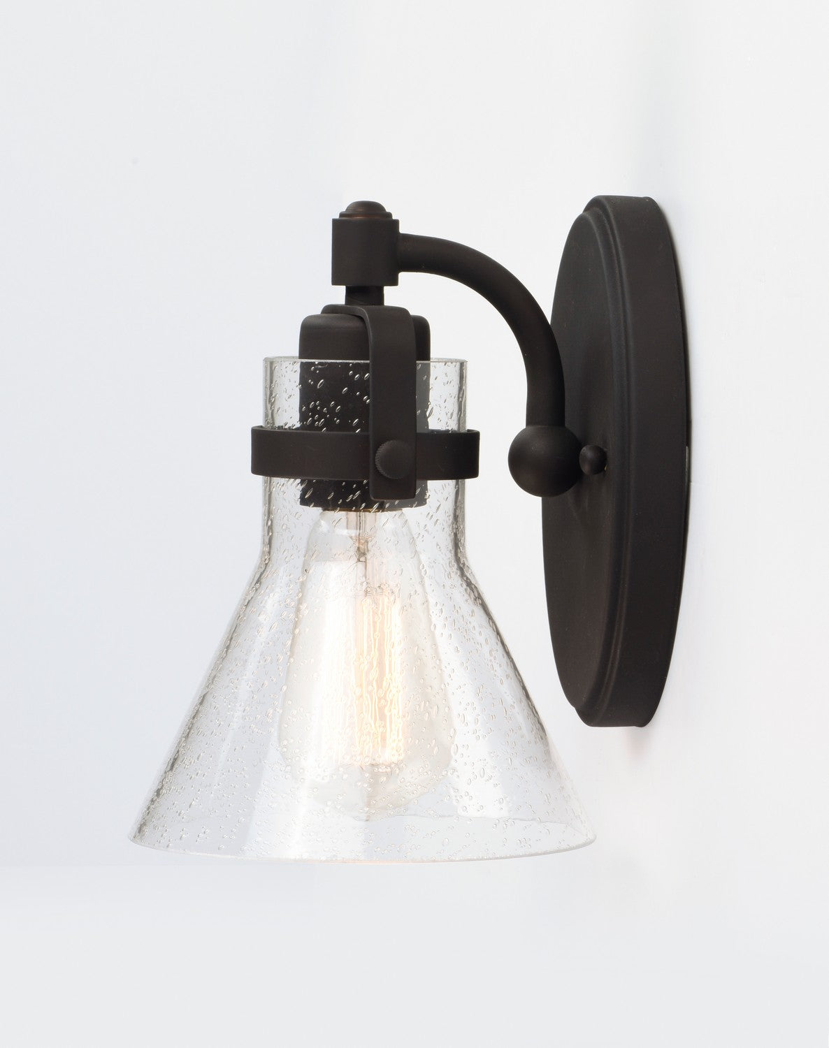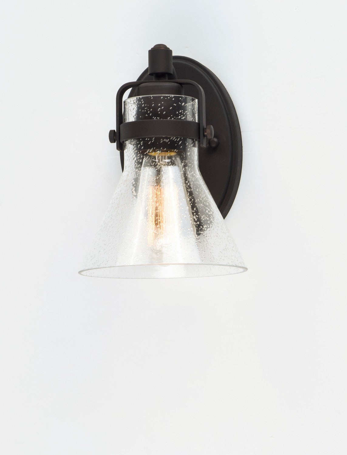 This nautical-inspired collection features Clear Seedy glass cones suspended by a yoke frame. The clear glass offers abundant lighting and compliments the styling of the fixture. Make it a more industrial look by adding filament E26 light bulbs.
