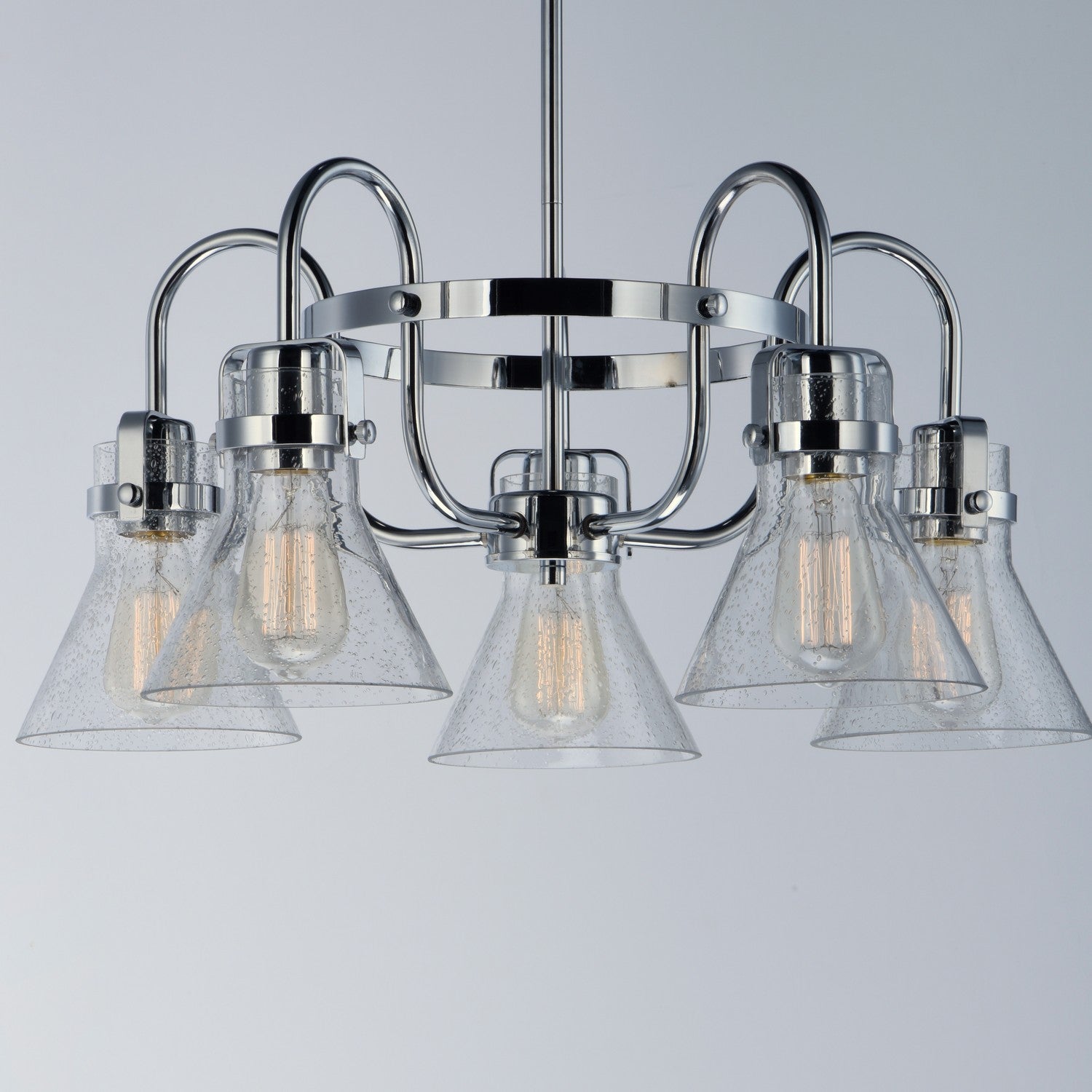 This nautical-inspired collection features Clear Seedy glass cones suspended by a yoke frame. The clear glass offers abundant lighting and compliments the styling of the fixture. Make it a more industrial look by adding filament E26 light bulbs.