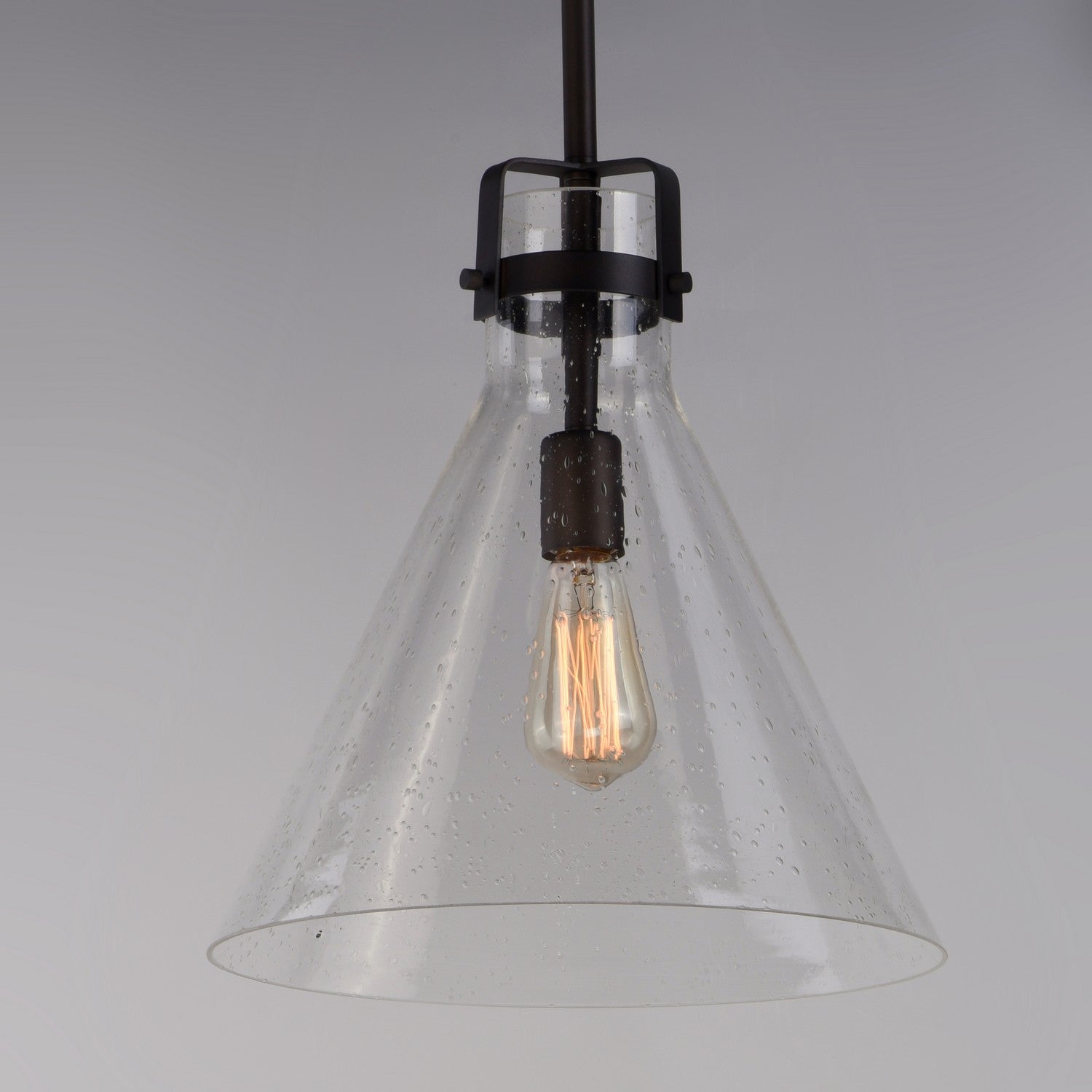 This nautical-inspired collection features Clear Seedy glass cones suspended by a yoke frame. The clear glass offers abundant lighting and compliments the styling of the fixture. Make it a more industrial look by adding filament E26 light bulbs.