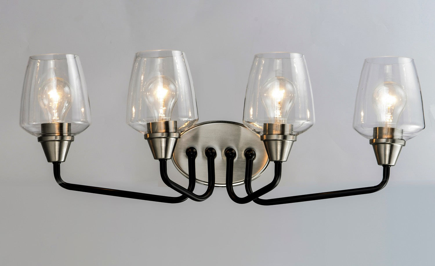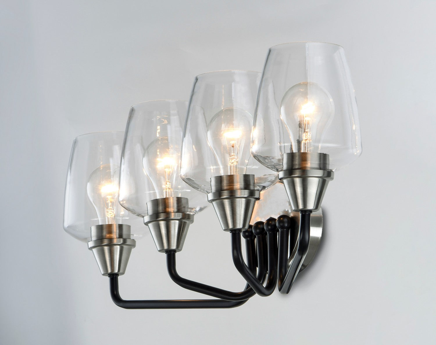 Simple yet elegant frames are finished in two tone finishes to add upscale element to this economical collection. Frames are available in either Bronze with Antique Brass accents or Black with Satin Nickel accents. Both are supplied with Clear glass shades inspired by stemware for a tailored profile.