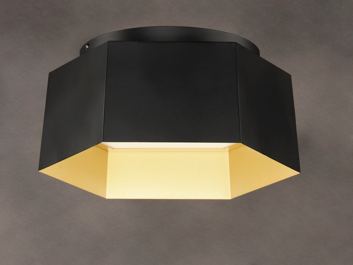 A series of hexagonal metal shades are slightly tapered to create a gentle arc when suspended together. The dramatic combination of Black with Gold interior adds flair to this unique and bold design. Ample illumination is provided by high power integrated LED and softened by acrylic diffusers recessed into each compartment.