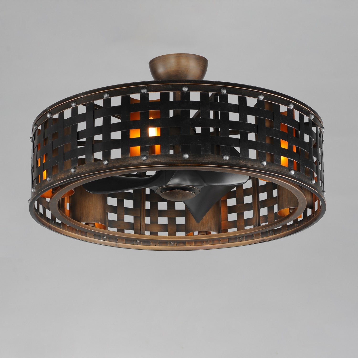 Not just a fan, the Portcullis FanDelight is framed within a woven metal grate pattern in a rich Bronze Gilt finish. The interior gold finish adds warmth to the candelabras that are shielded with a curved reflector backplate not to be disrupted by the circulating fan blades behind it. With a full range of fan control and Wifi-enabled, this fixture is not only attractive, but full of functional features.