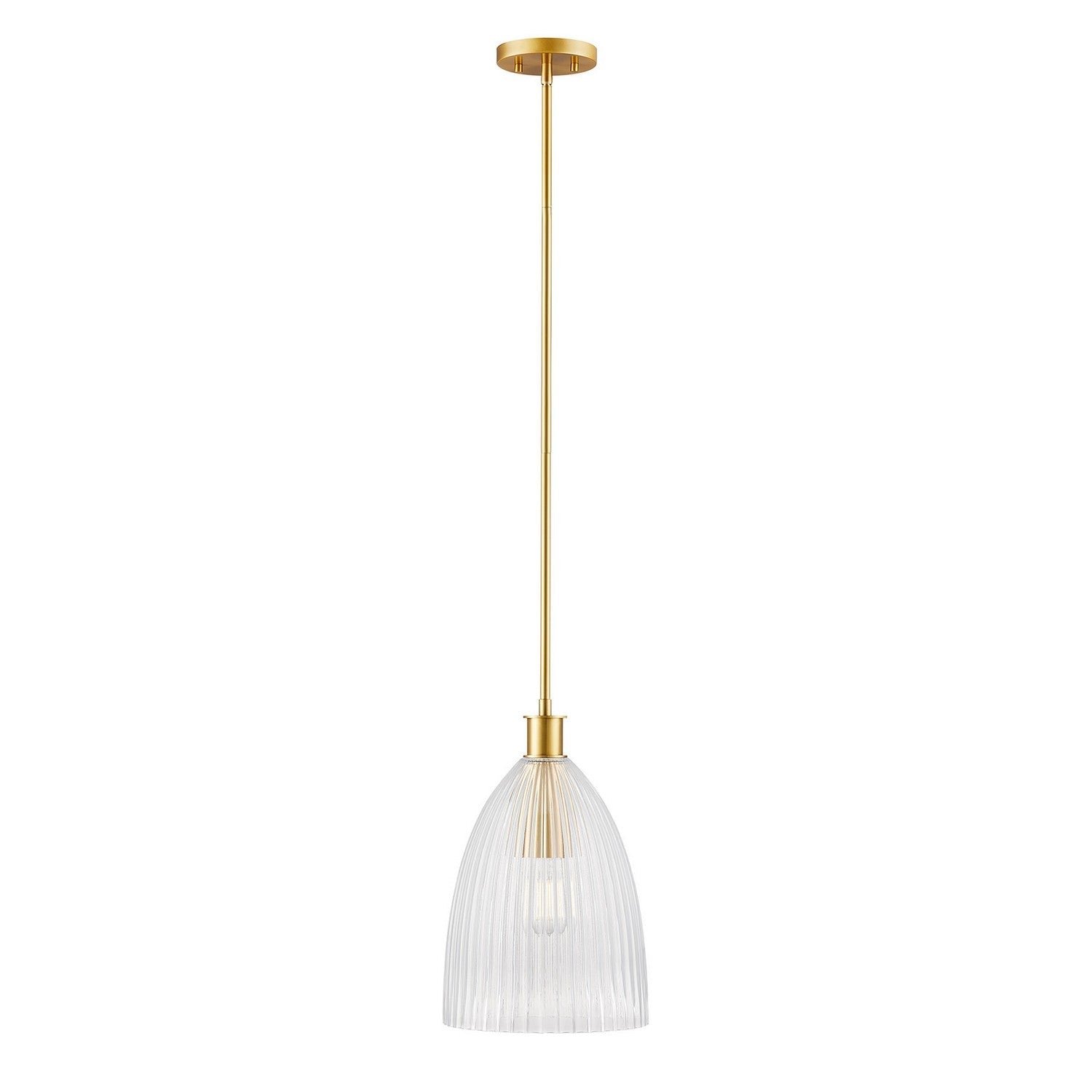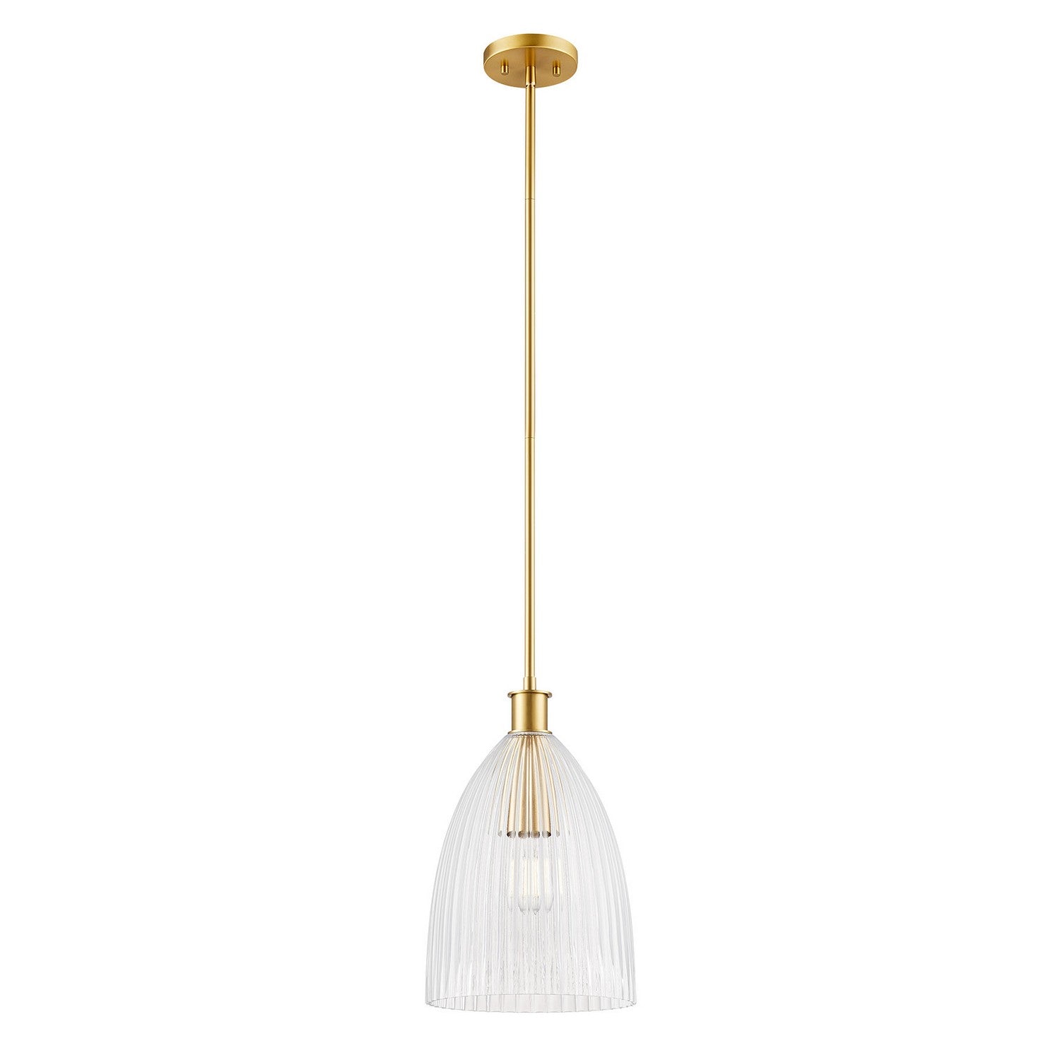 Create beautiful illumination with this 1-light pendant! Its ribbed glass shade brings in a big dose of textural intrigue and its Natural Brass finish adds richness. This pendant is 15.5" in height and 10" in width. It uses one standard size bulb of up to 60 watts. Bulb not included.