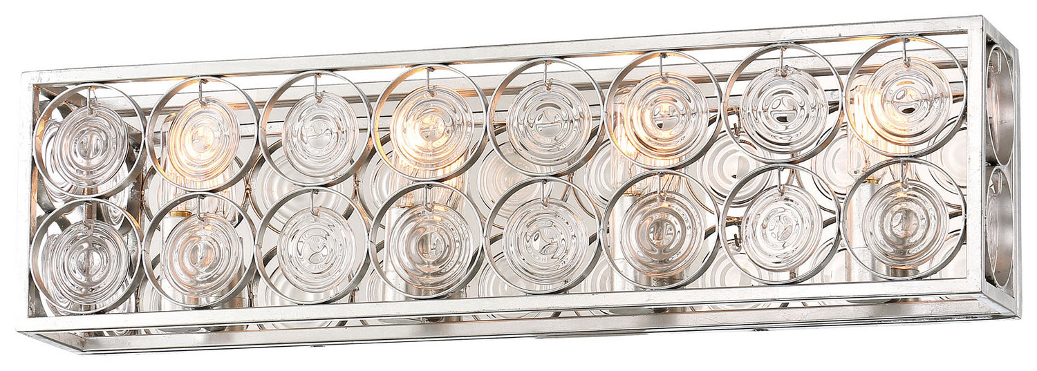 4 Light Bath in Catalina Silver Finish with Clear Ripple Glass with Reflective Backplate