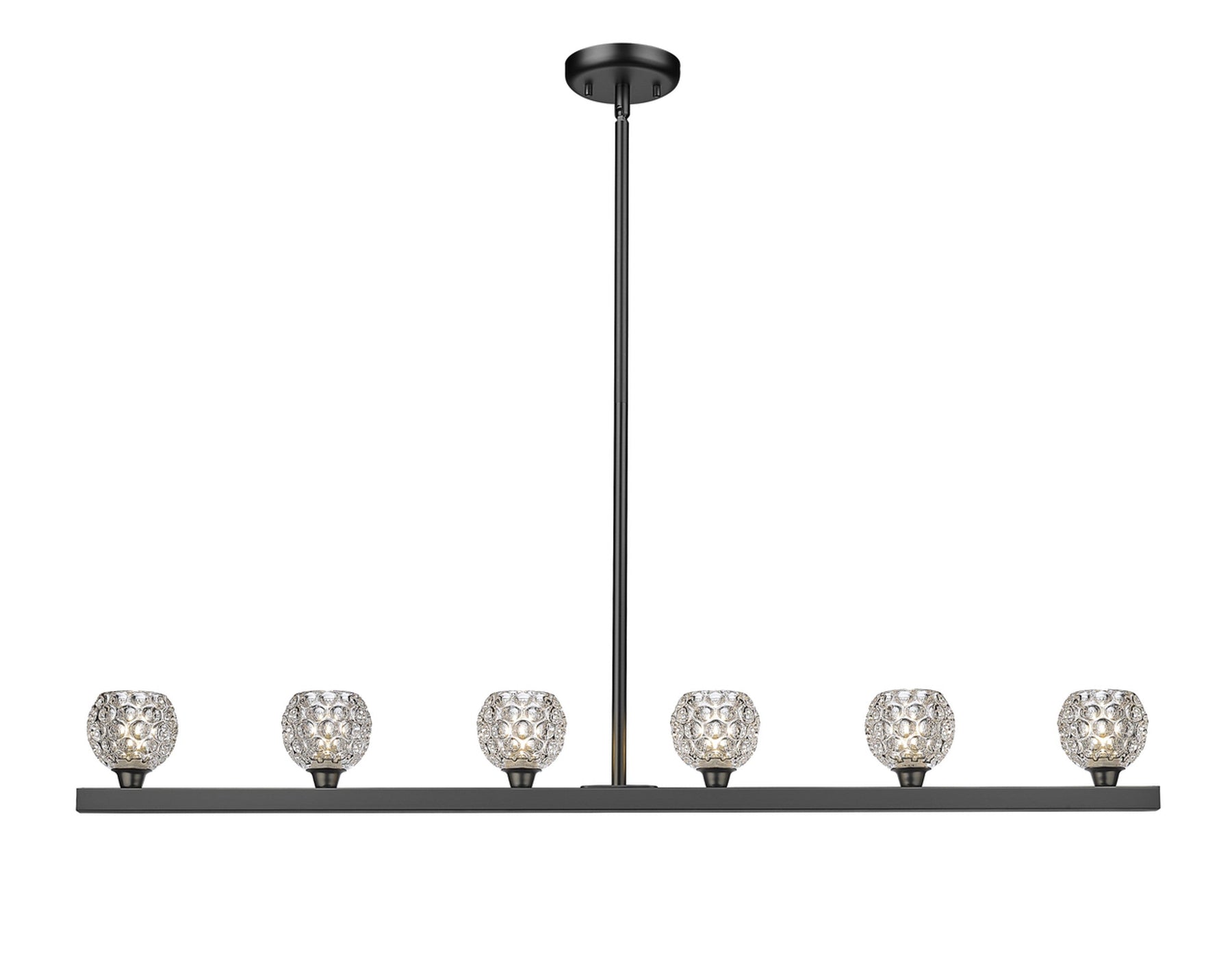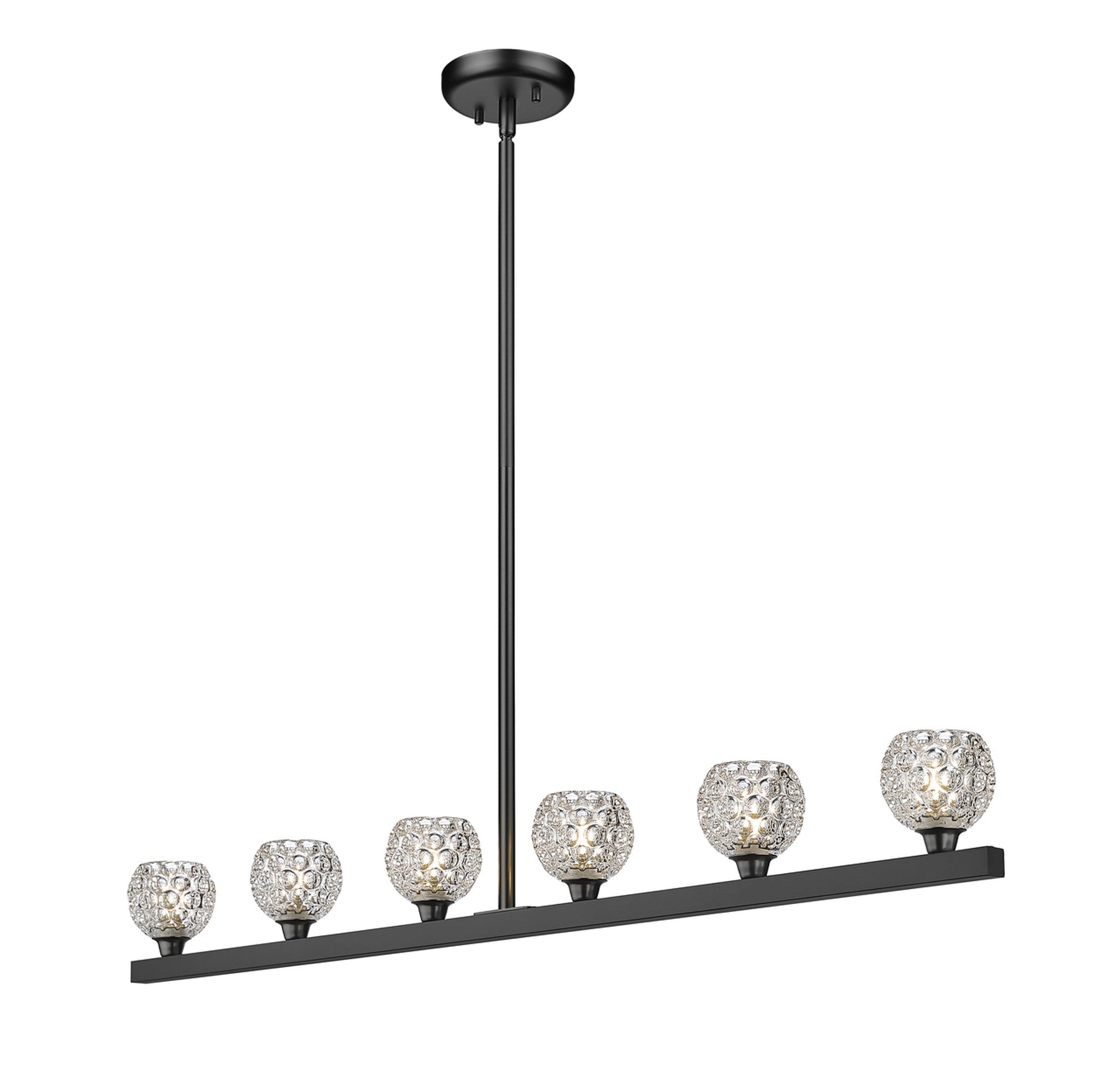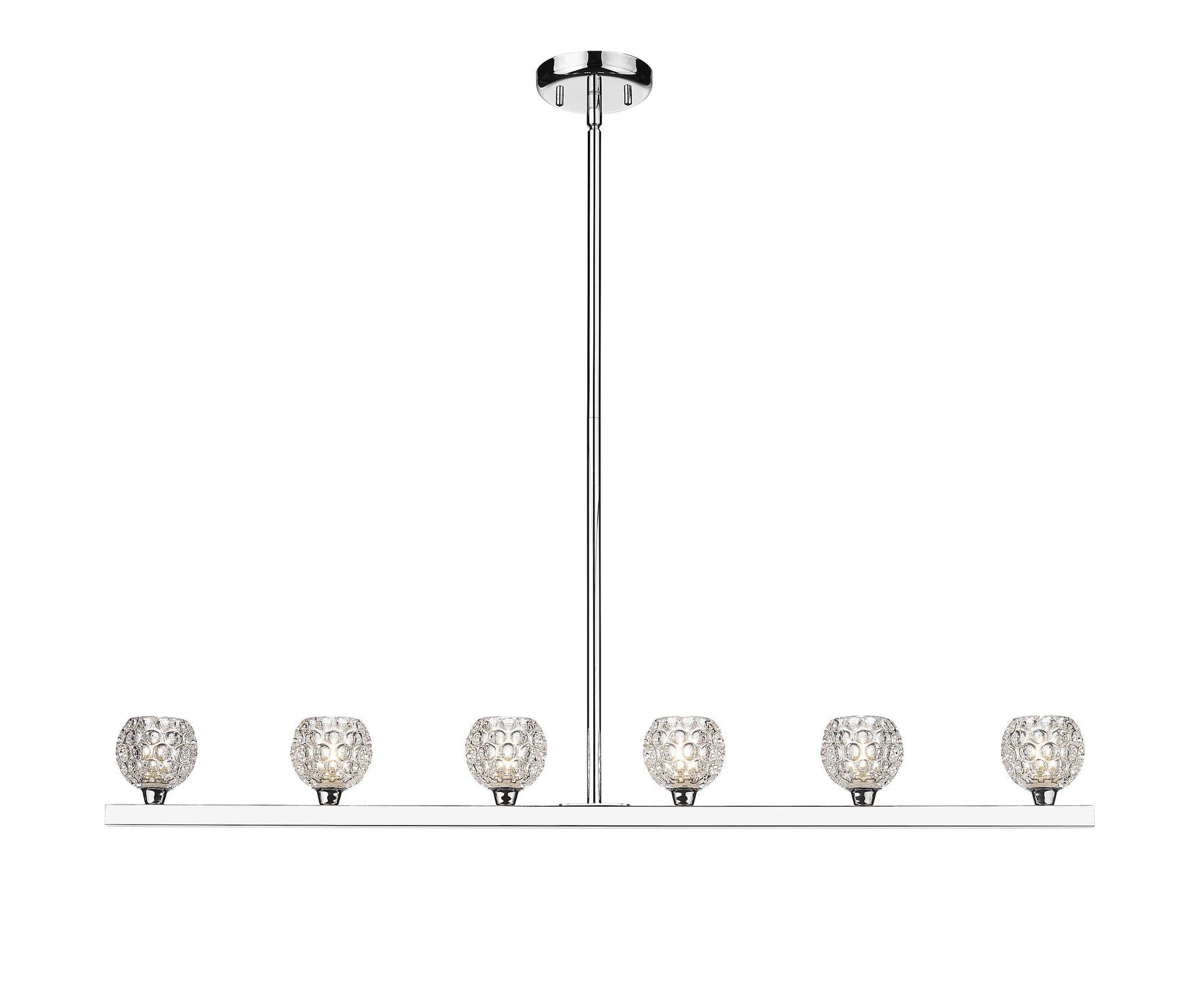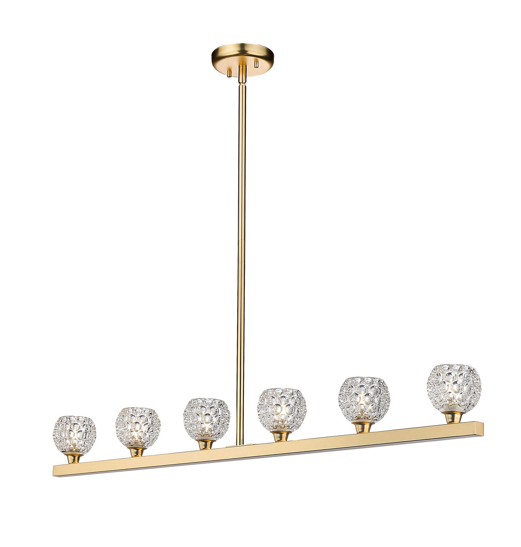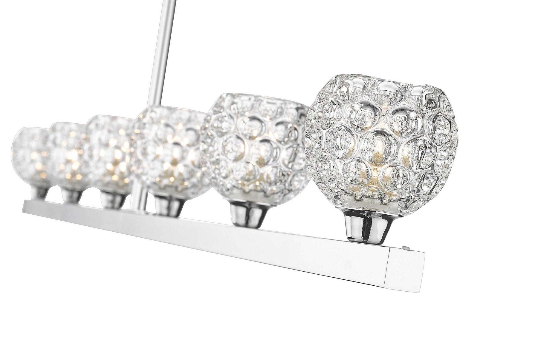 The Papillon 6-Light Linear Light introduces a modern, elegant extension to the Papillon family. Featuring six dimpled glass shades, this fixture creates a shimmering, textured glow perfect for kitchen islands, dining areas, or office spaces.