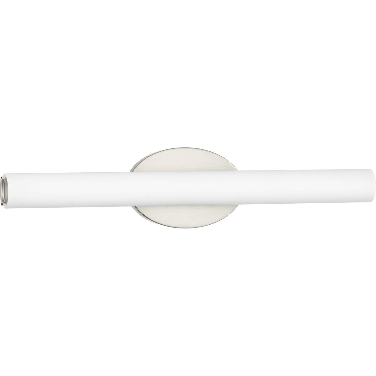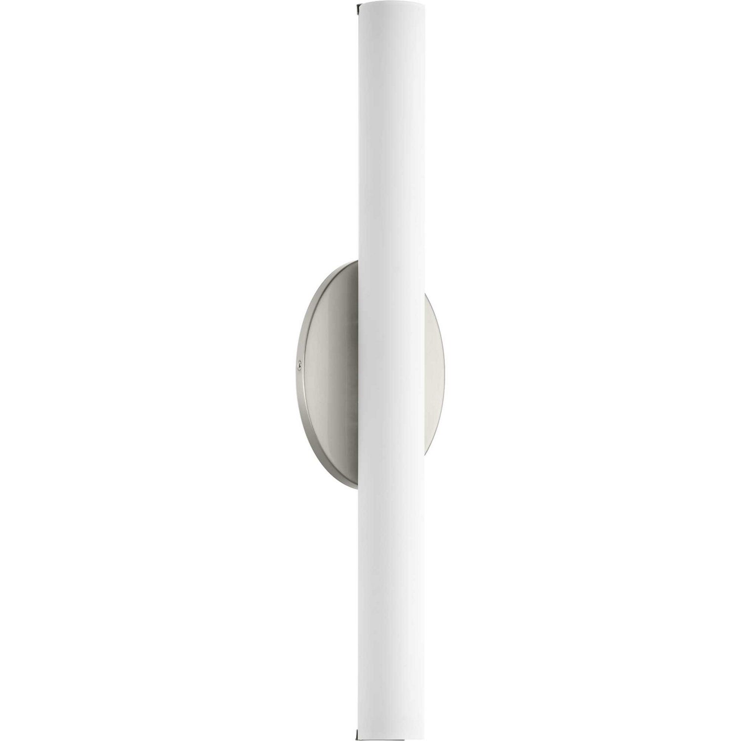 Parallel LED bath and vanity fixtures feature a tubular opal glass diffuser paired with a simple, modern oval metal canopy. An integrated LED source provides a variety of energy and cost savings benefits. Suitable for residential and commercial applications, and can be installed vertically or horizontally.