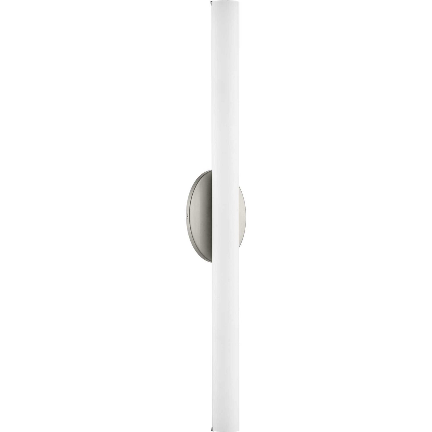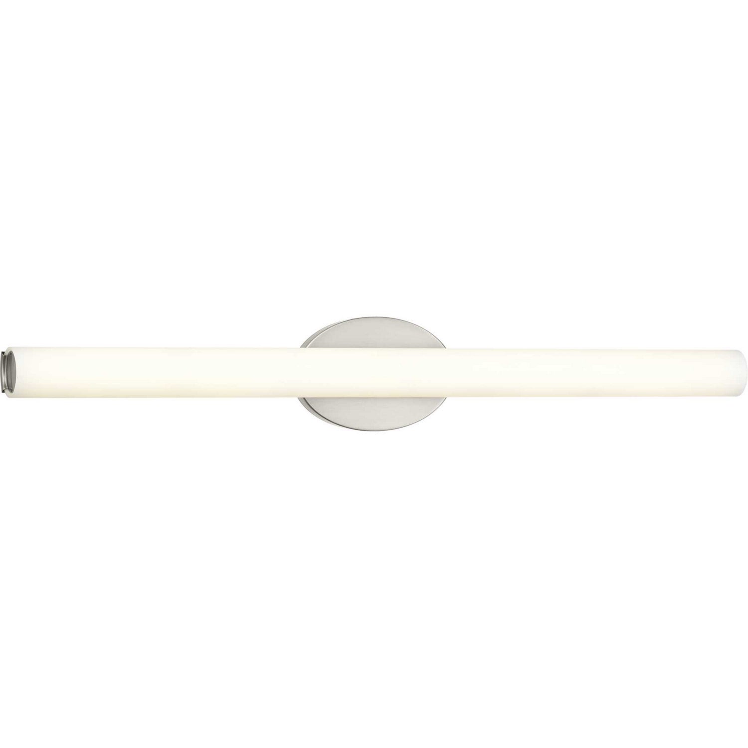 Parallel LED bath and vanity fixtures feature a tubular opal glass diffuser paired with a simple, modern oval metal canopy. An integrated LED source provides a variety of energy and cost savings benefits. Suitable for residential and commercial applications, and can be installed vertically or horizontally.