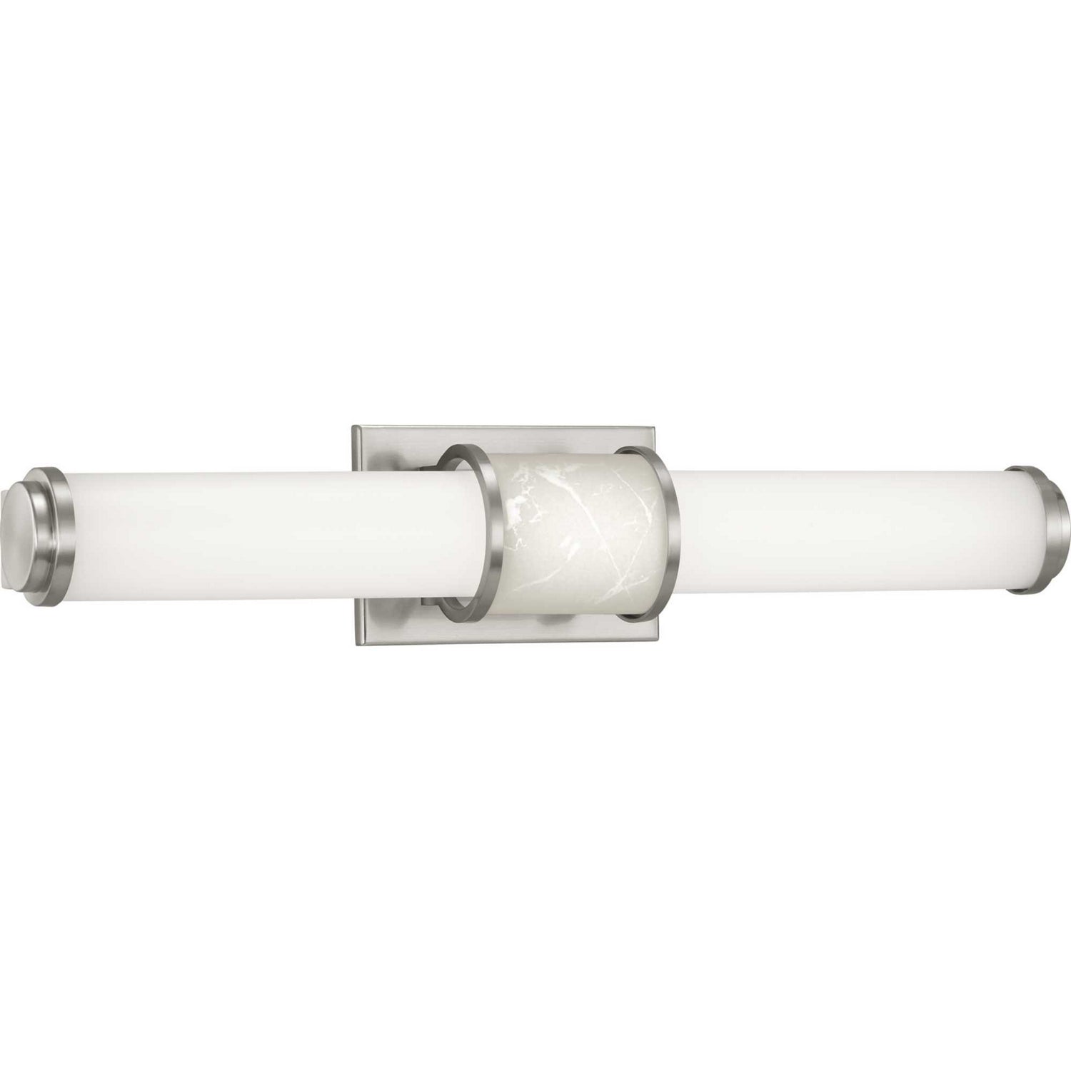 A classic form with contemporary updates, The Collection 24in. bath bar features elongated acrylic shade with a decorative center accent. Both a faux stone option and white geometric decorative diffuser are included to further customize the fixture. An integrated LED source provides uniform illumination, as well as energy and cost savings benefits. Can be installed vertically or horizontally and is suitable for Modern interiors.
