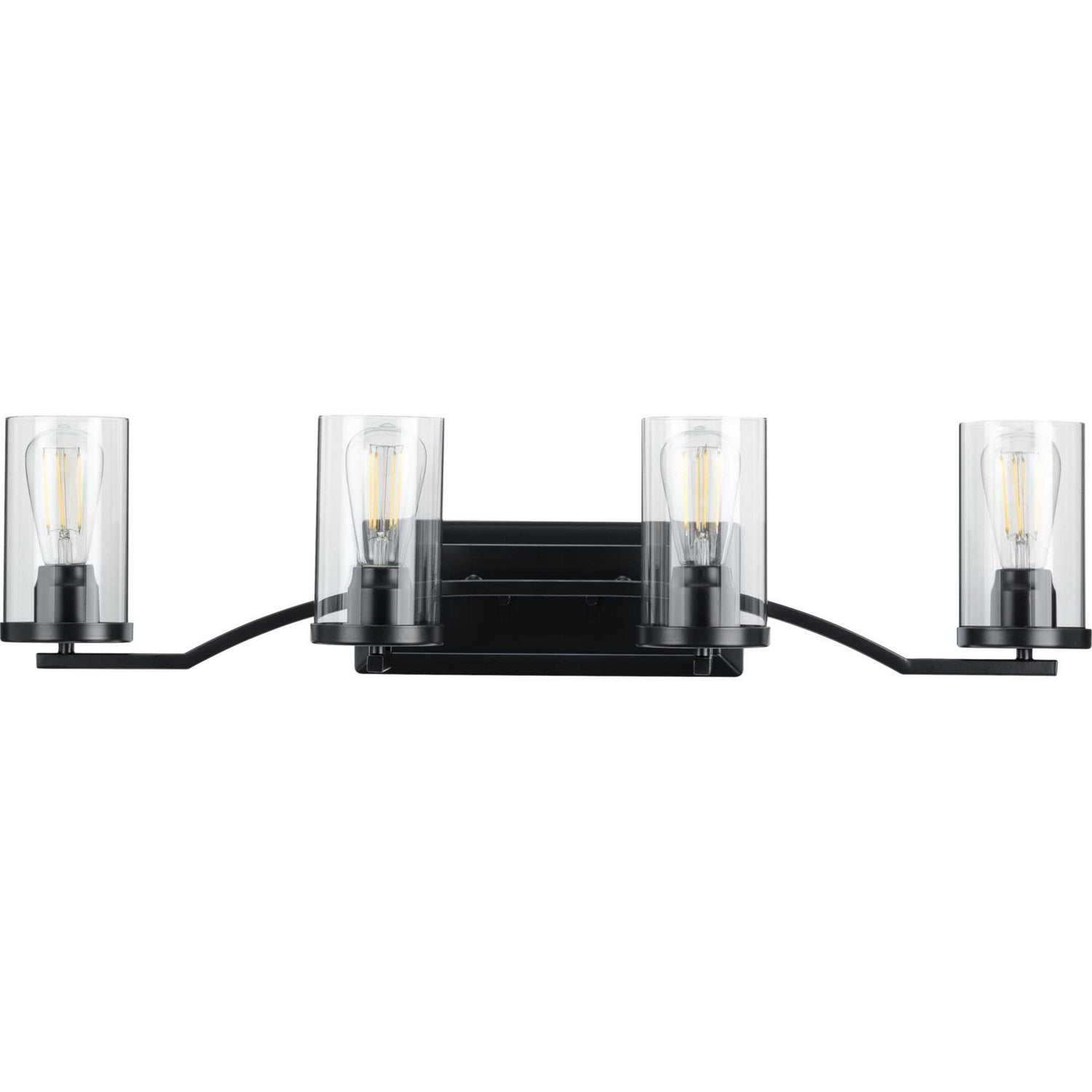 Manifest a swoon-worthy lighting experience with the stunning blend of modern and traditional styles in this one-of-a-kind light fixture. Square tubing with clean, sharp angles demand your attention and appreciation. A beautiful black finish coats a handsome rectangular backplate. Striking vintage light sockets boast their bold yet simple demeanors within the safety of sophisticated clear glass shades.