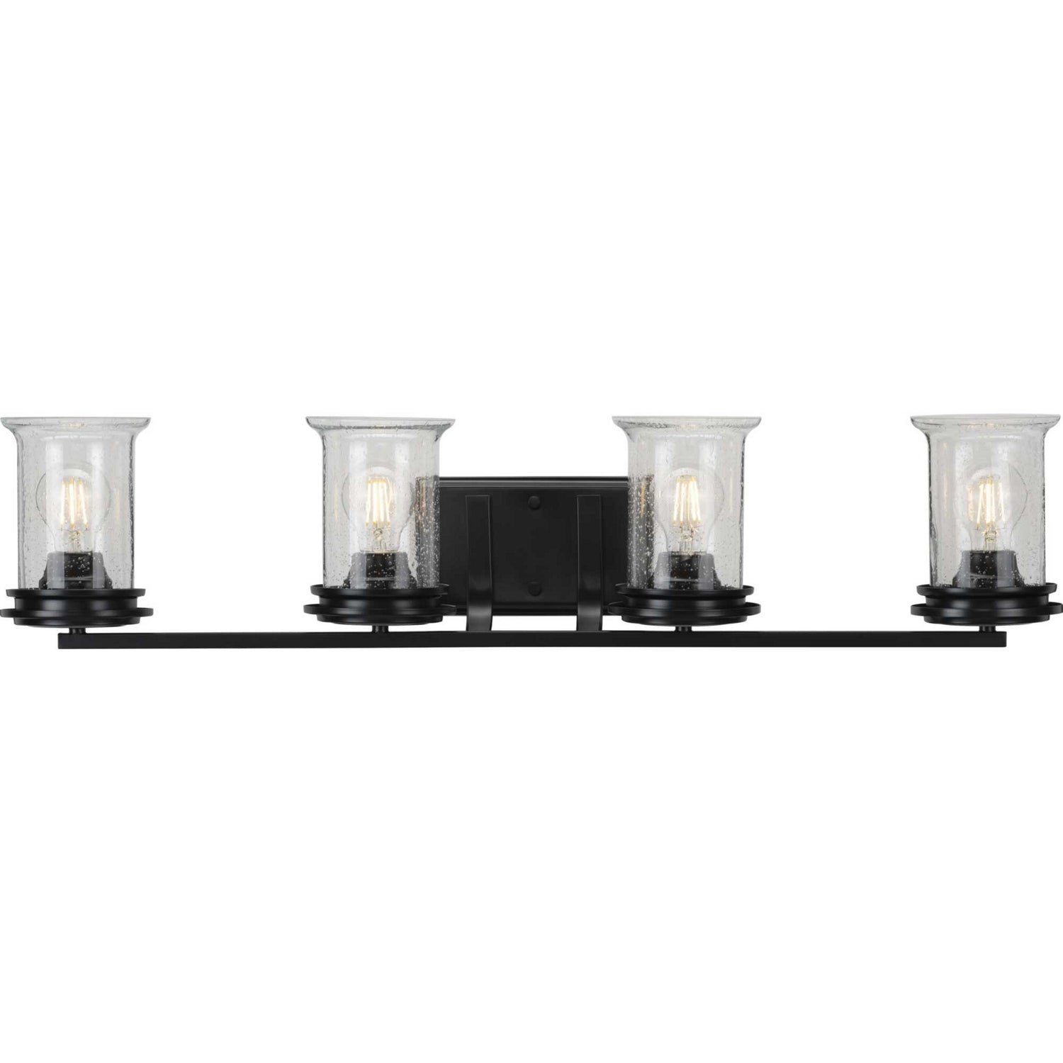 Immerse yourself in a home atmosphere primed for relaxation and inspired thinking with the beautiful craftsmanship of this bath light from the Winslett Collection. Savor this fresh take on a classic light choice as your gaze traces graceful arms and clean crisp lines coated in a beautiful black finish. Lightly seeded glass shades rest in shiny pedestal light bases that add an unexpected, but welcomed dash of modern personality to this clean, traditional design.