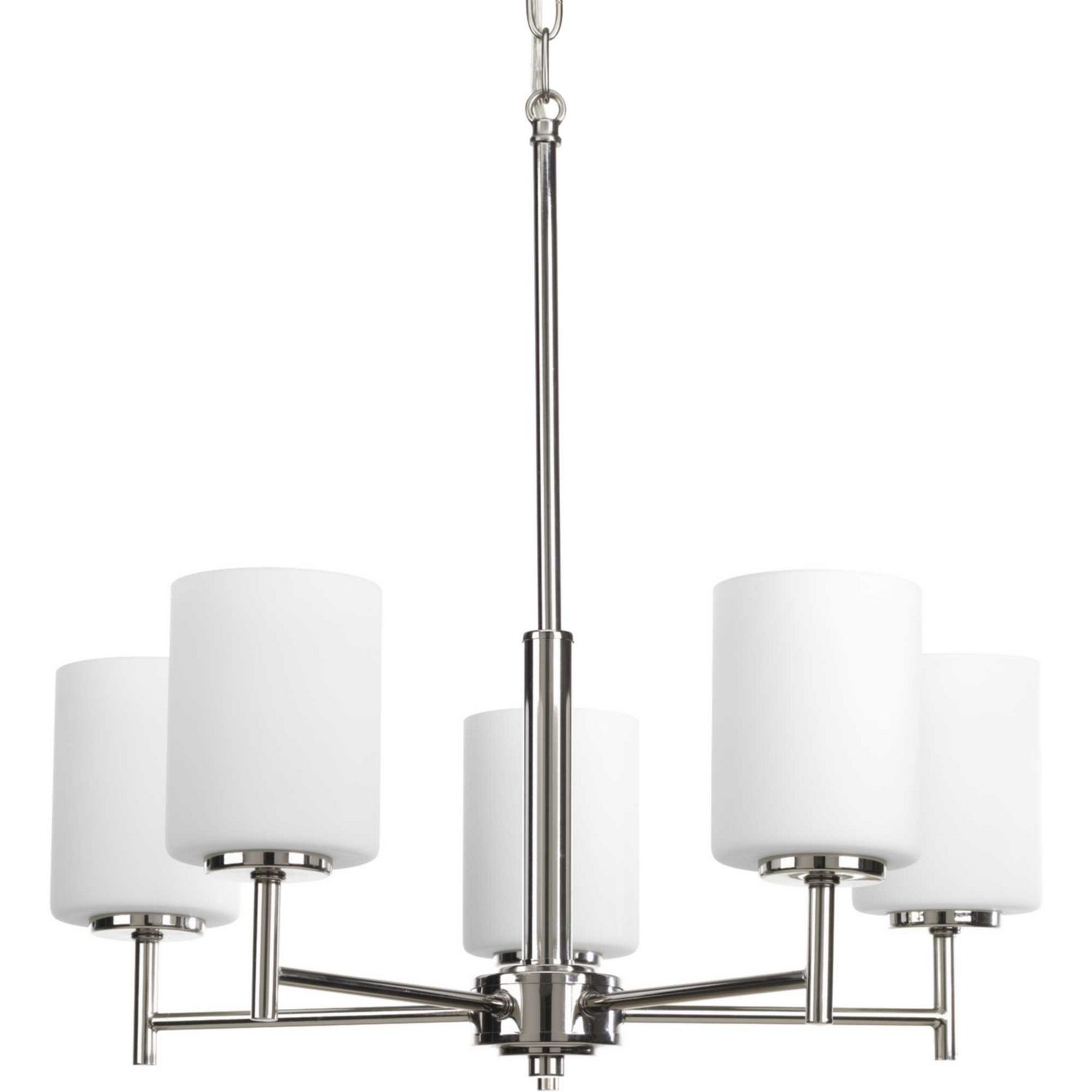 Five-light chandelier from the Replay Collection, smooth forms, linear details and a pleasingly elegant frame enhance a simplified modern look. Arms can be faced up or down.