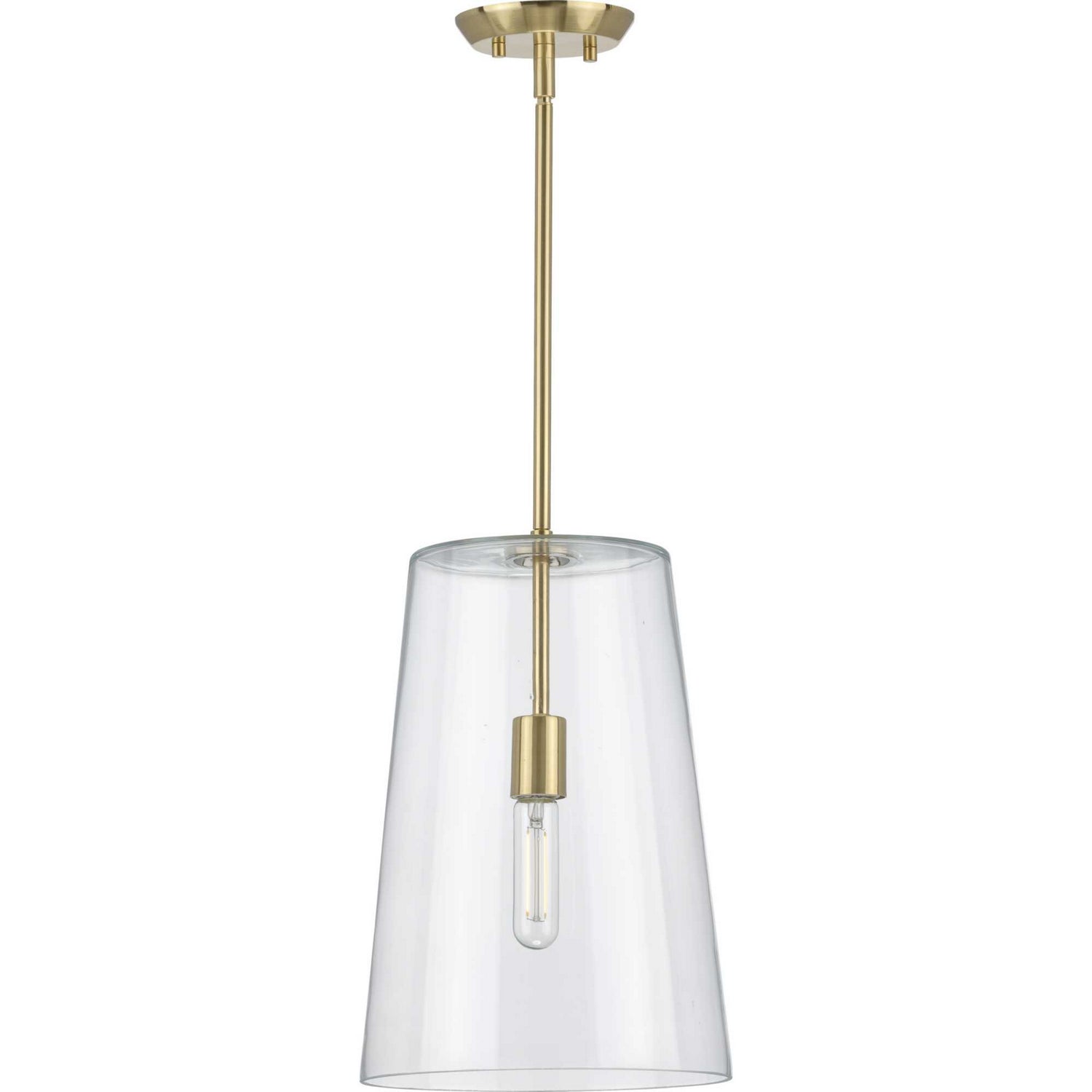 Who says you have to sacrifice forms for function? This versatile pendant features a simple, clear glass shade that embraces minimalist modernity and functional task lighting. The glass shade rests at the end of a sleek satin brass bar that attaches to the ceiling. Each light fixture has a swivel at its base that makes it perfect for installing on flat or angled ceilings.