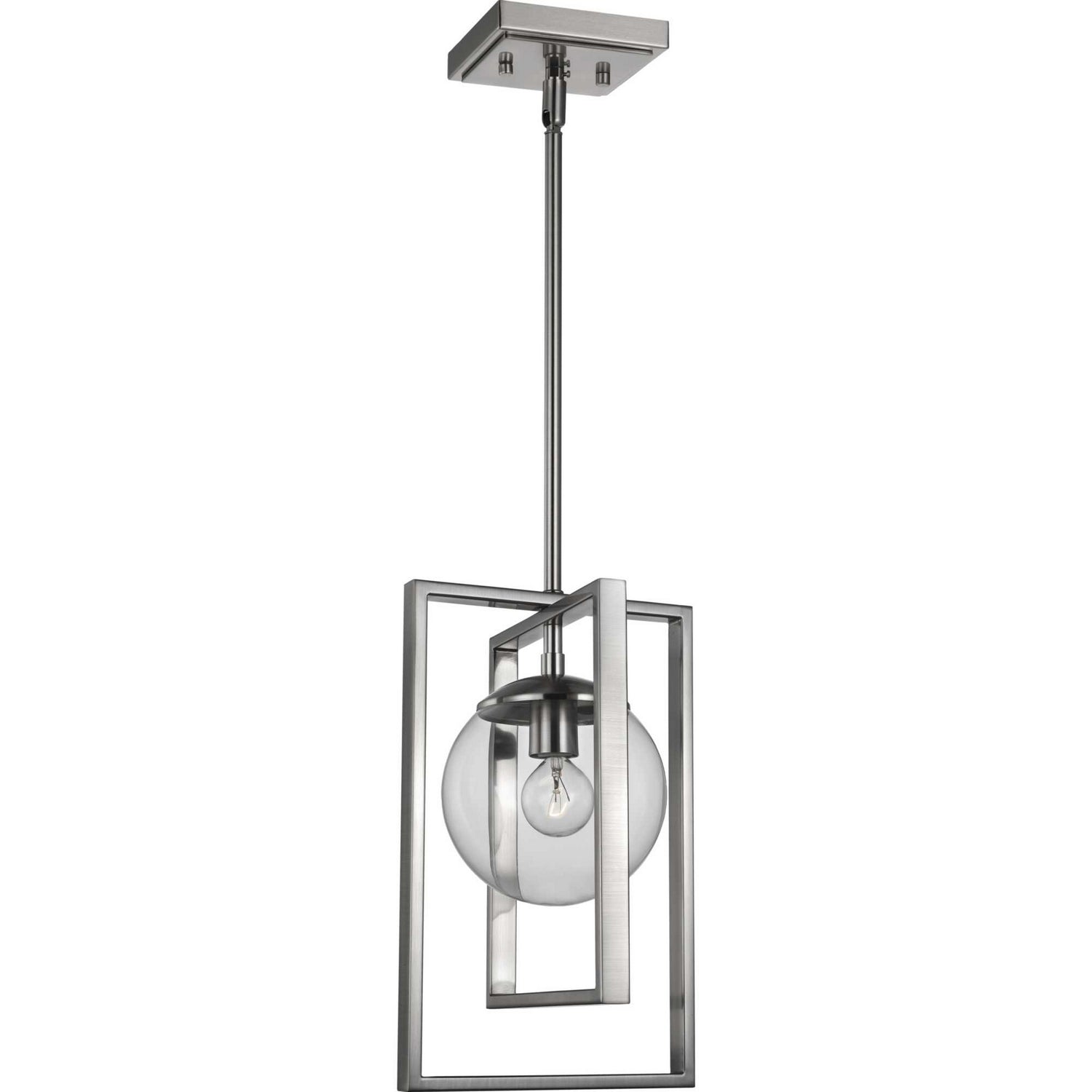 Extraordinary on the first impression, but always at peace with whatever setting it calls home, this pendant is a statement-making lighting design. The light fixture features an intricate blend of circular and a one-of-a-kind architectural designs that is both remarkable and enduring. A clear globe shade softens and contrasts with the frame`s sharp corners.
