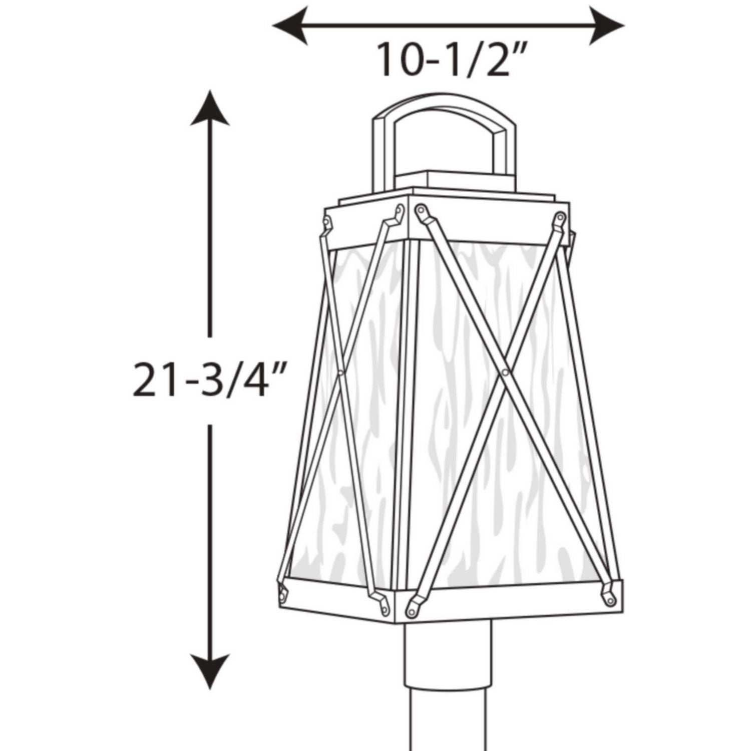 A cottage-inspired outdoor post lantern collection with a tapered cage. Creighton features clear water glass clear and Antique Bronze finish. The frames linear details are riveted to enhance mechanical detailing of the fixture. Fits 3`` post (order separately). Wall, post and hanging lantern options available.