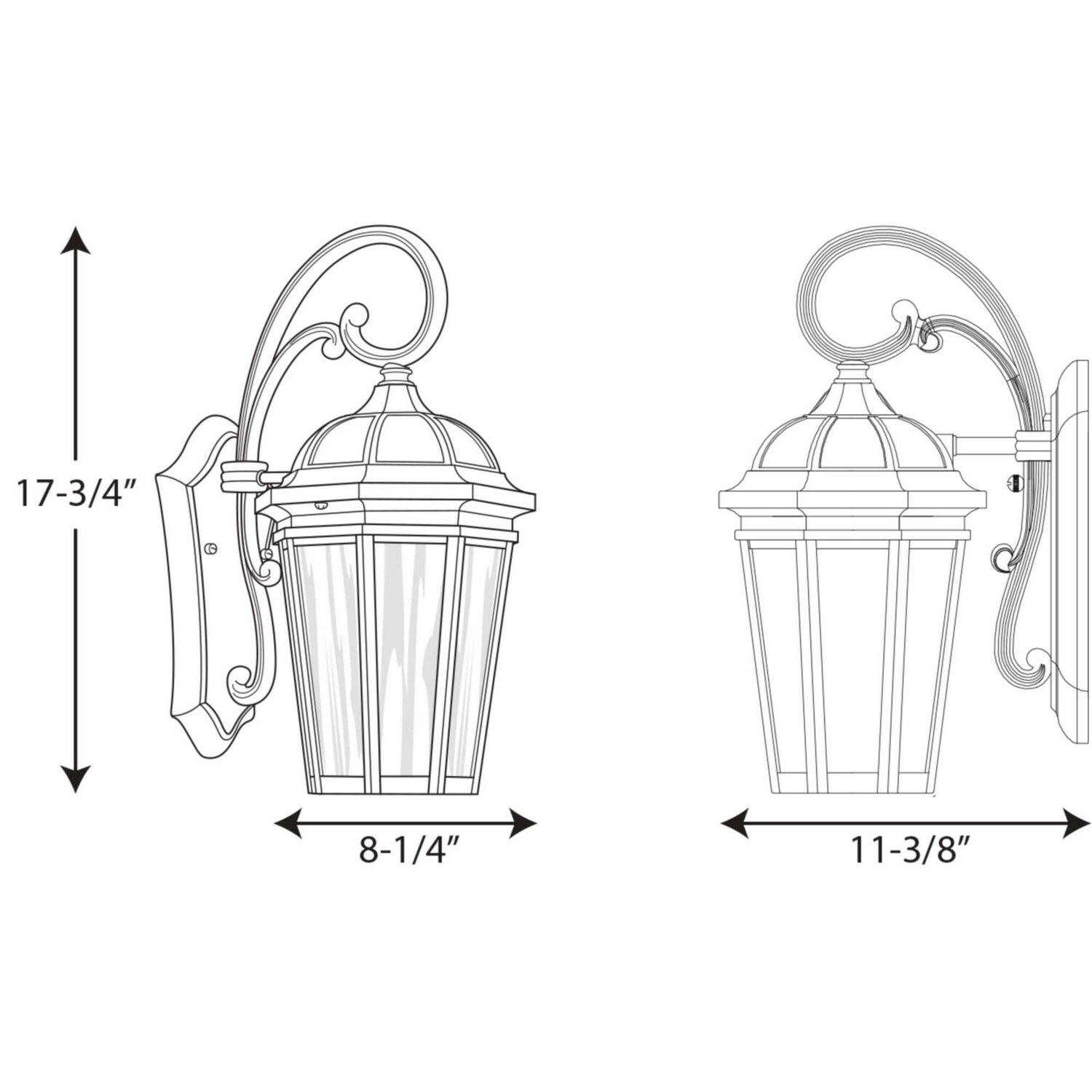 The one-light wall lantern in the Verdae collection offers traditional styling for a variety of exteriors. Classic and formal clear seeded glass complements a Black finish. Open bottom design allows easy access to replace lamps.