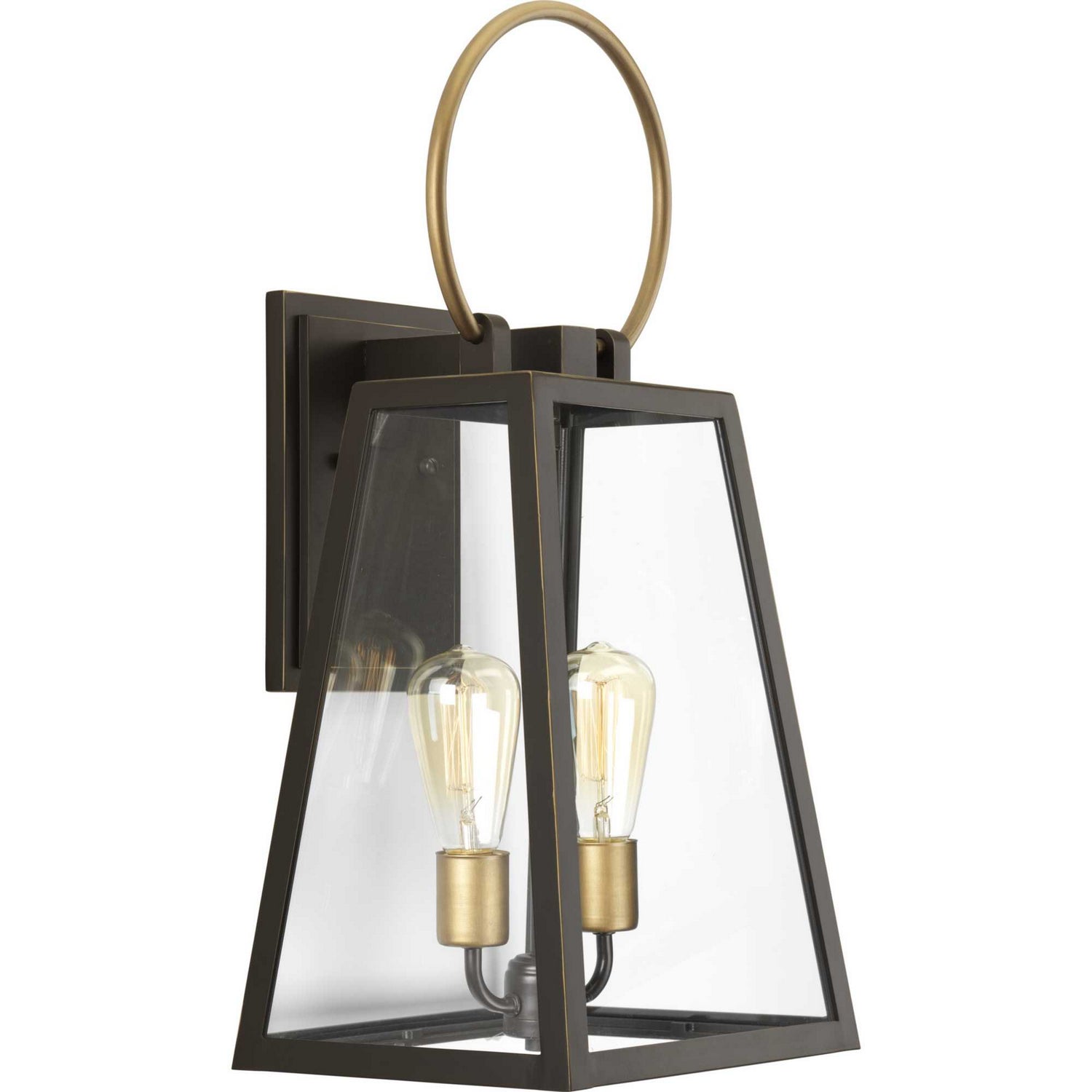 Barnett lanterns deliver timeless appeal with a decidedly modern flair. Large clear panes of glass frame your choice of traditional or vintage style bulbs. A graphic-inspired overscaled loop features a contrasting brass-tone finish.