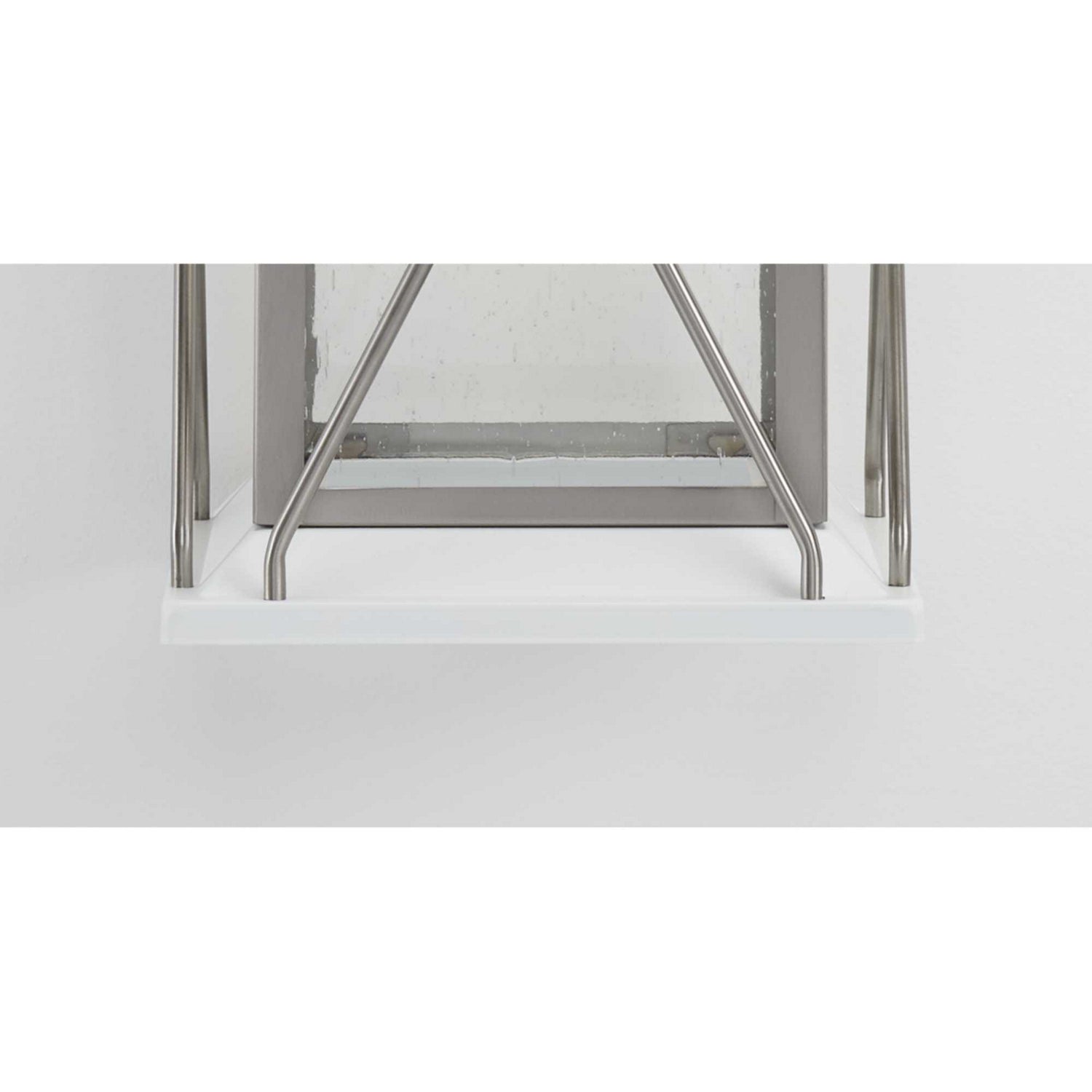 Transform you home into a warm and cozy dream with the friendly farmhouse-style of this small wall lantern. A rustic X-brace design decorates each side of the charming lantern silhouette. Clear seeded glass panes add an extra pop of rustic personality. A stainless steel finish complemented with white accents adds warmth and character as the lantern infuses your home with gentle illumination.