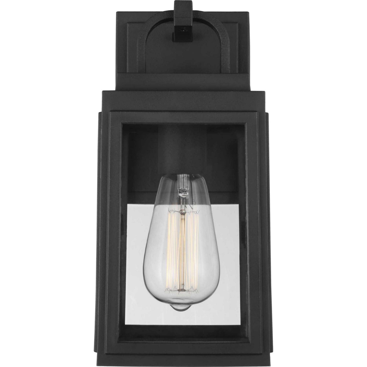 Partner timeless elegance with a pinch of coastal vibe with this wall lantern. A beautiful black square frame crafted from corrosion-proof composite polymer material features a half loop on top of the structure. The light fixture`s clear glass panes allow the lantern to complement other farmhouse and coastal decor for an overall beautiful, welcoming look. DURASHIELD by Progress Lighting is built to last. Constructed from a composite material with UV protection, DURASHIELD holds up even in the harshest weather conditions. This high-performance finish has a 5-year warranty and is resistant to rust, corrosion, and fading.