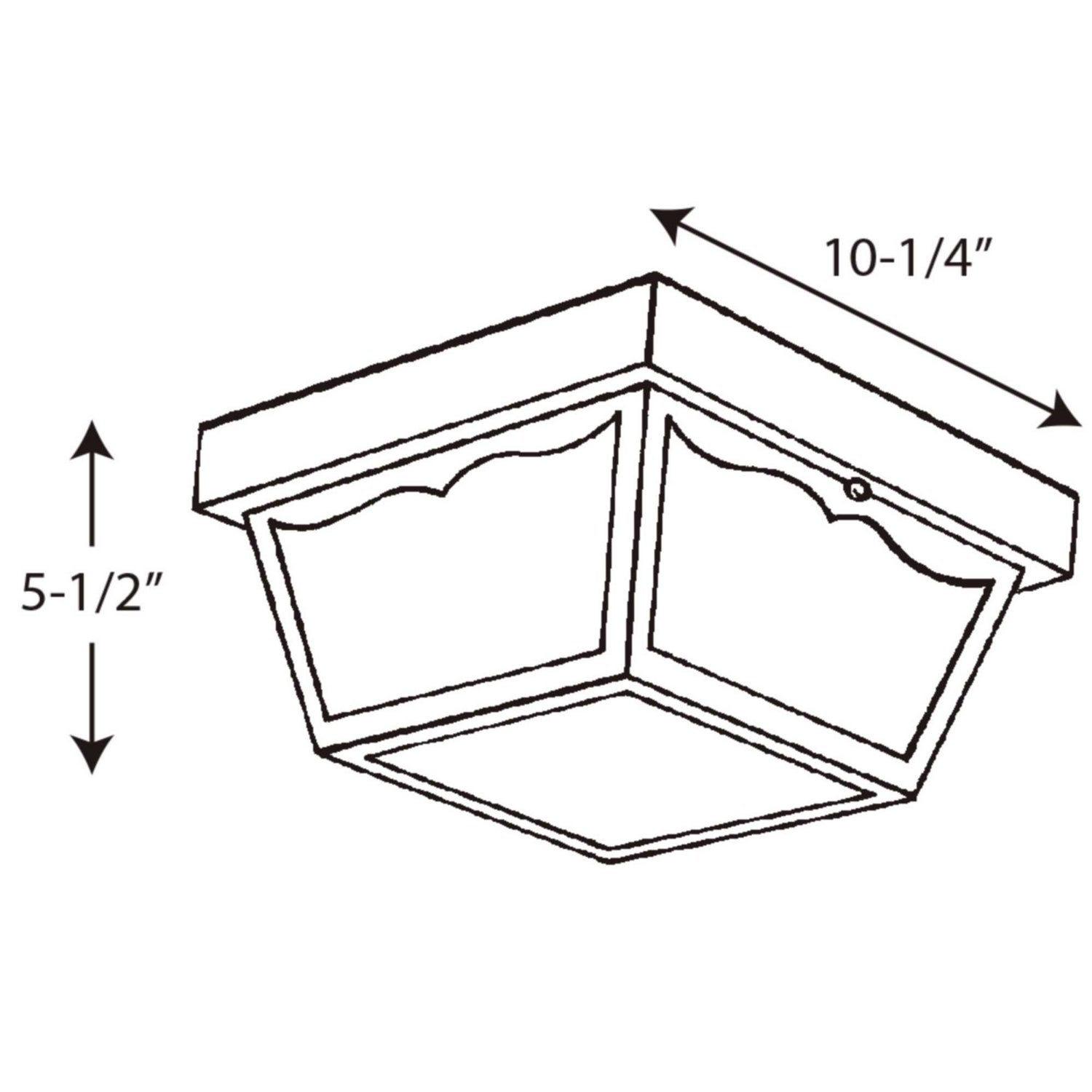 A black two-light non-metallic ceiling light featuring a one-piece, white acrylic diffuser. The fixture is complete with scalloped edge detailing to enhance any outdoor space.