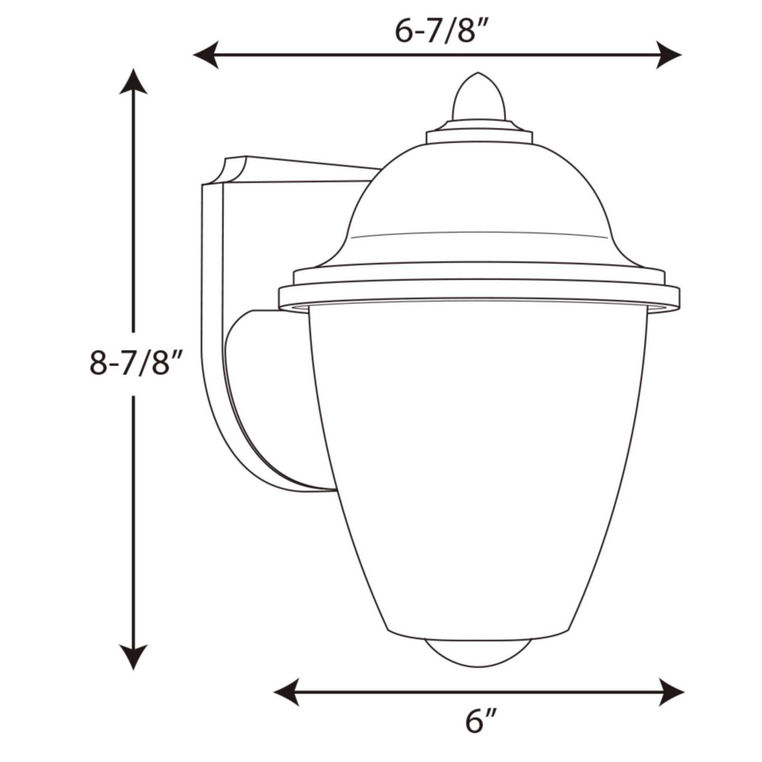 A black one-light plastic wall lantern with a white acrylic diffuser. Great for a classic outdoor space.