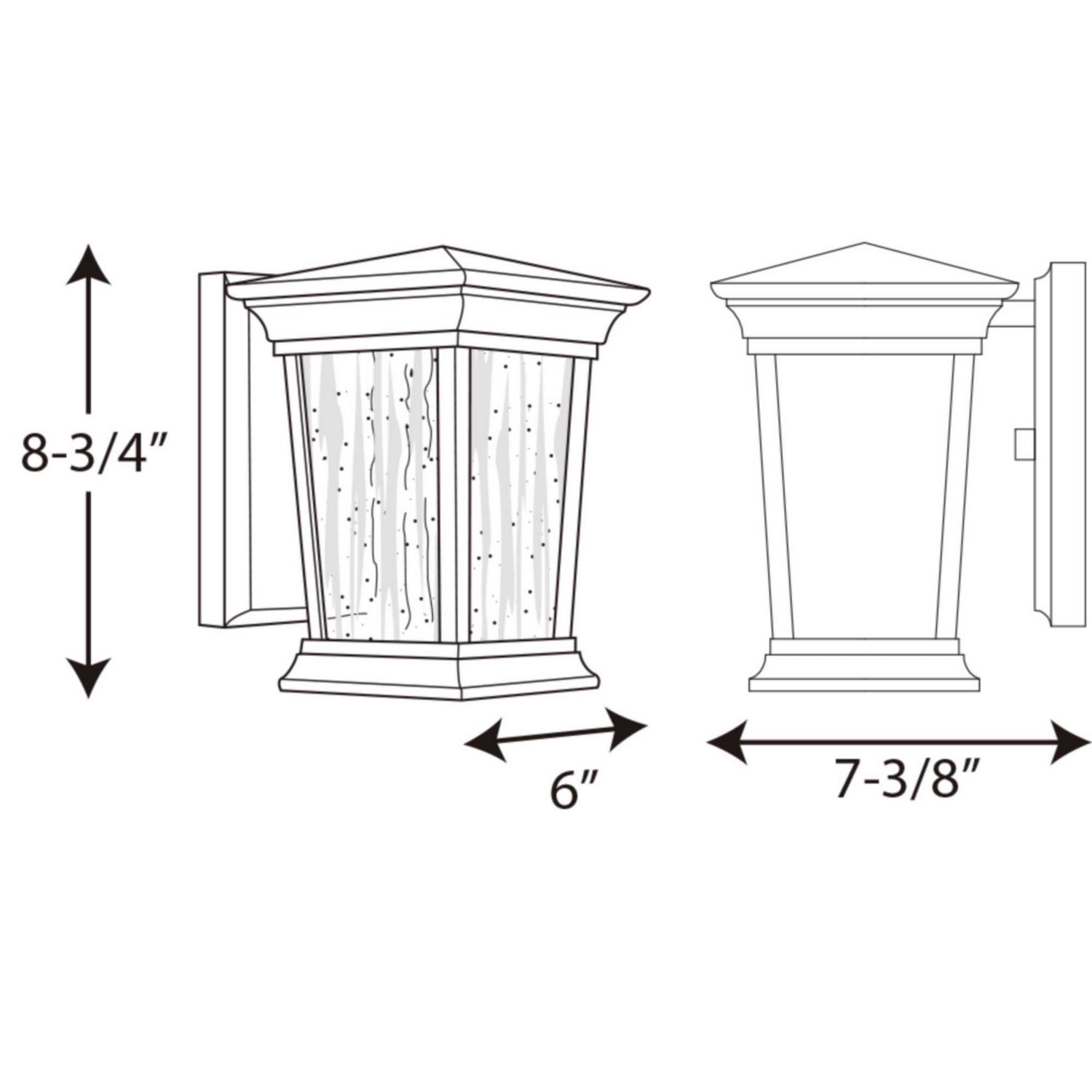 Arrive LED lanterns feature a die-cast aluminum, powder coated frame and heavily textured glass. One-light small wall lantern. 90+ CRI, 3000K, 623 lumens. Energy Star.