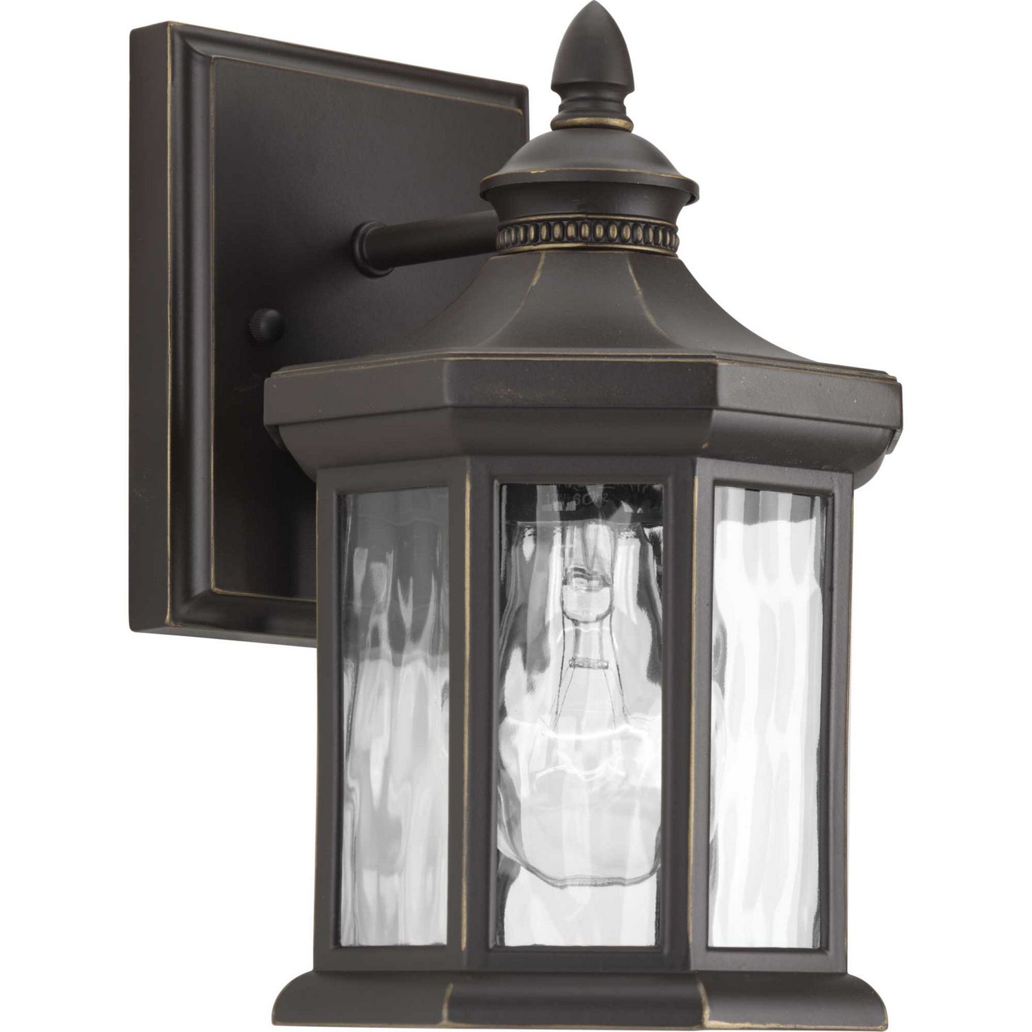 The one-light small wall lantern in the Edition collection features distinctive hexagonal shape for classic styling. Clear water glass elements are accented by a Antique Bronze finish. Die-cast aluminum construction with a powder coat finish makes this a durable style for updating a home`s curb appeal.