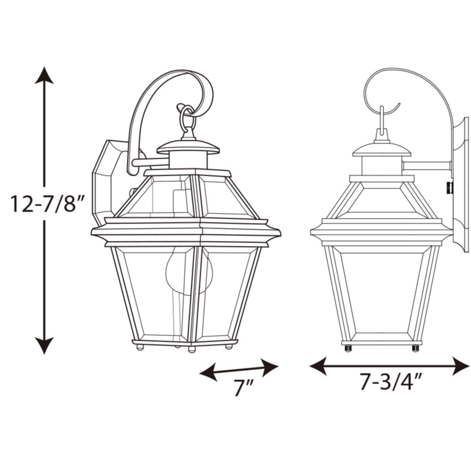 The one-light wall lantern from the Burlington outdoor collection is constructed from aluminum for durable, weather-resistant performance. An Antique Bronze finish complements the clear beveled glass. Open bottom design allows individuals to replace lamps without removing any glass shade.