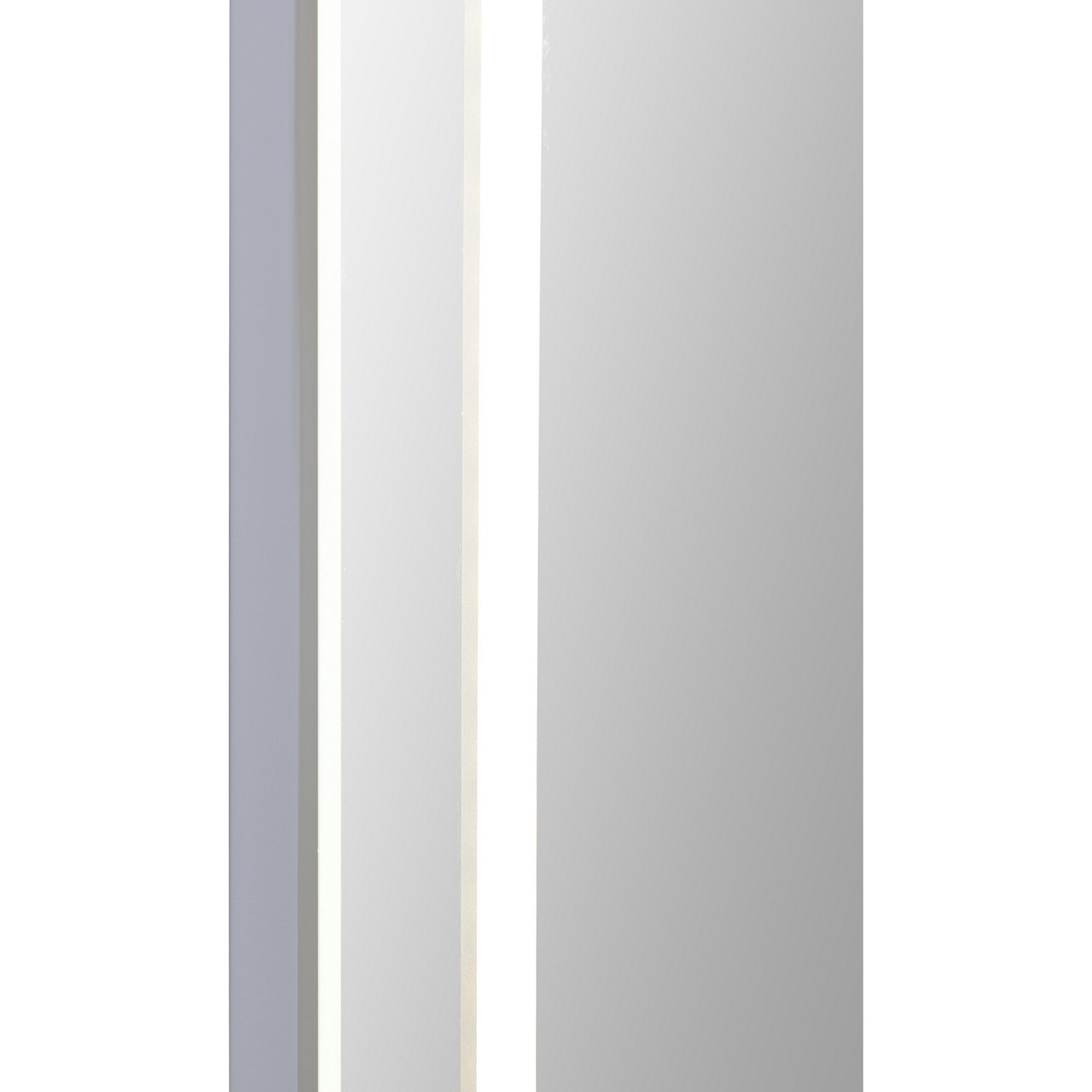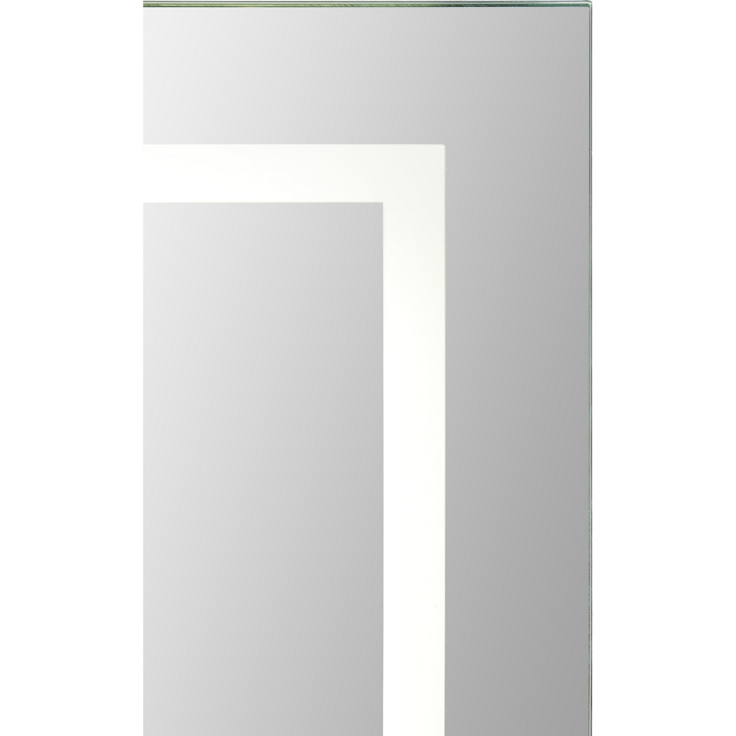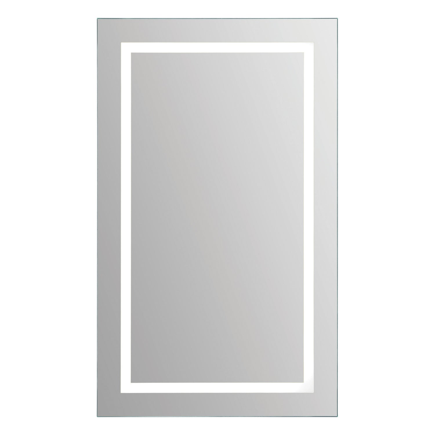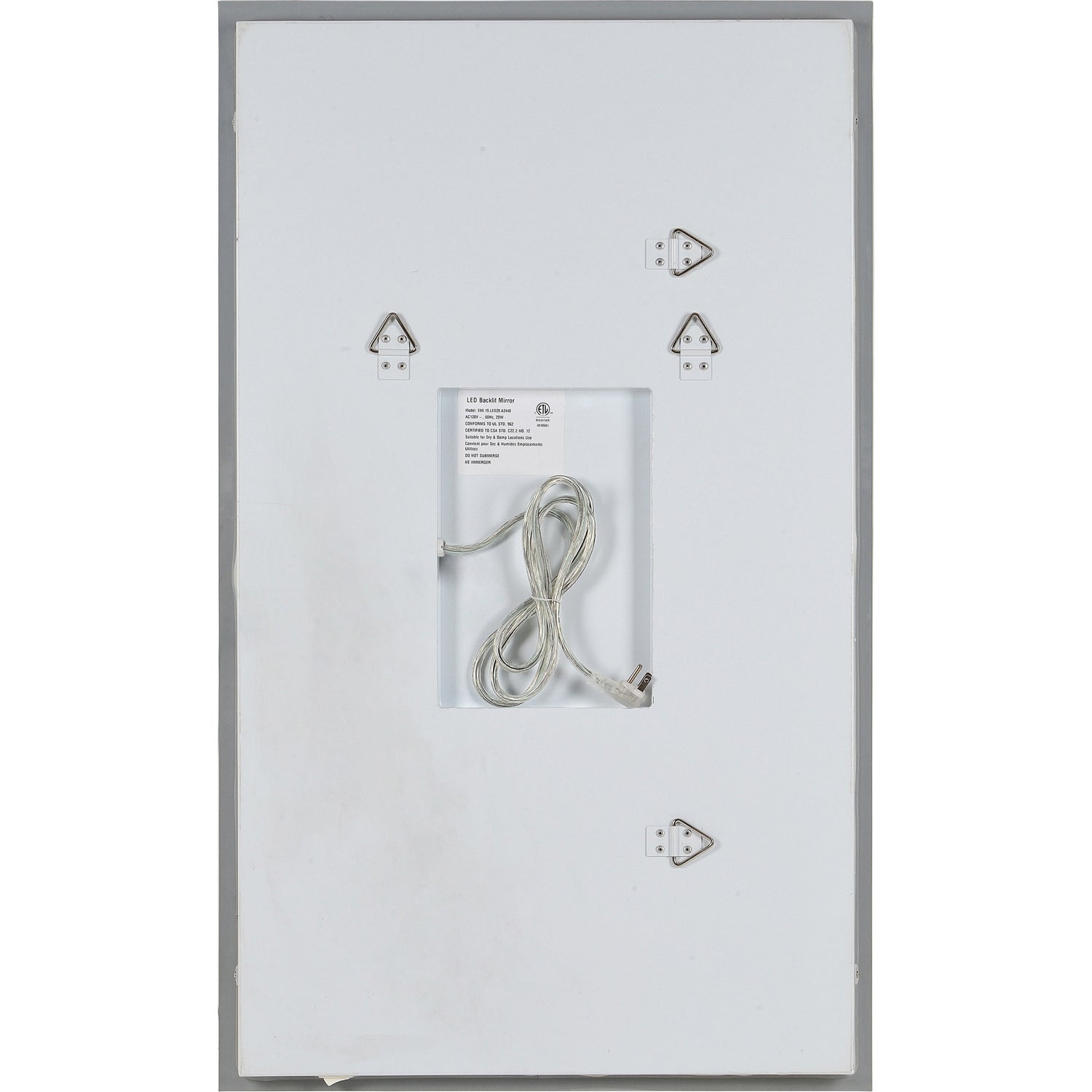 A rectangle border of LED light shines through this mirror, making it both a beautiful piece of decor and a functional lit mirror. Can be surface or recess mounted. The light on the border is a 3000 Lumen, 28.8 Watt, 4000 Kelvin, non-dimmable LED strip with a 50,000 hour lasting lifetime.