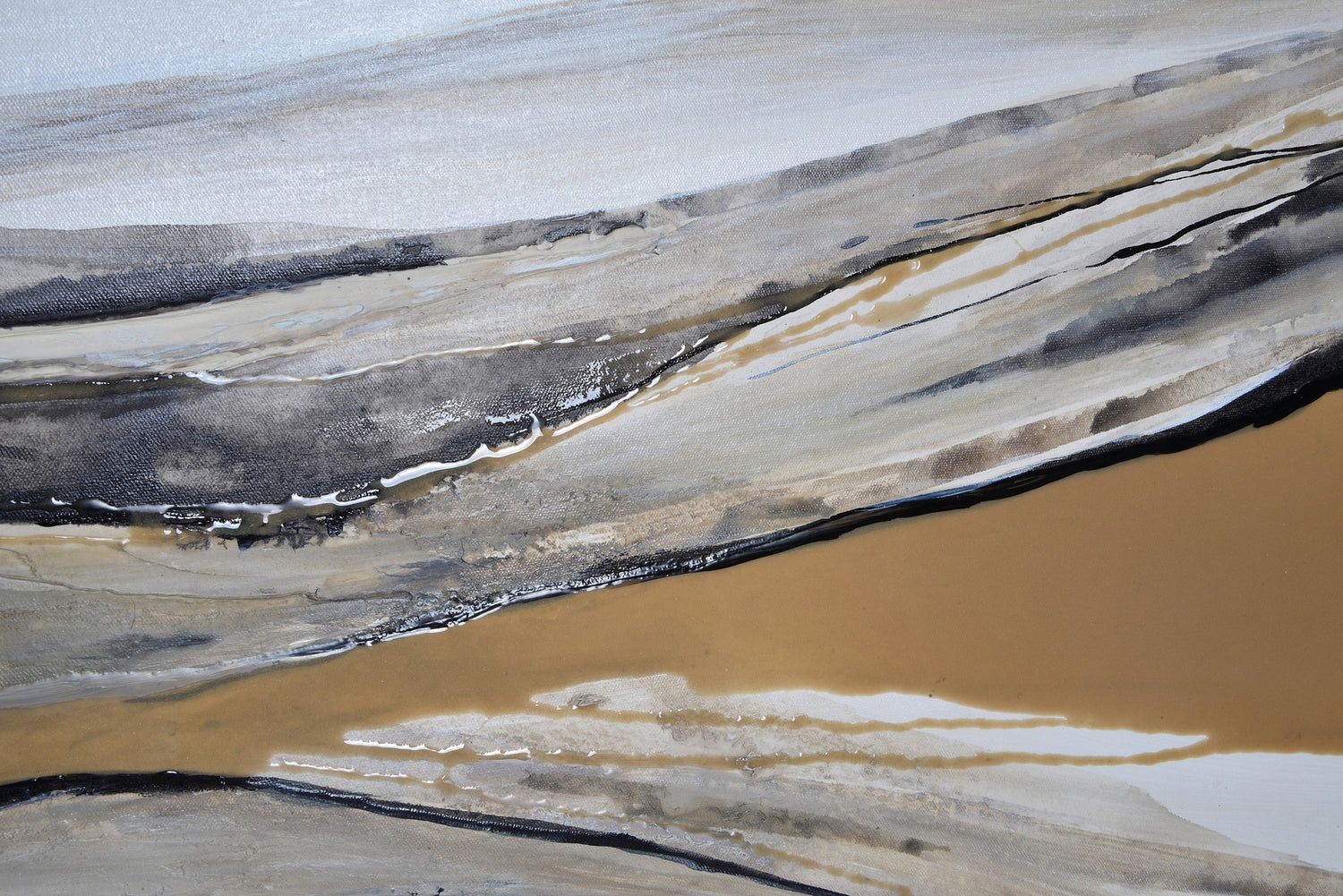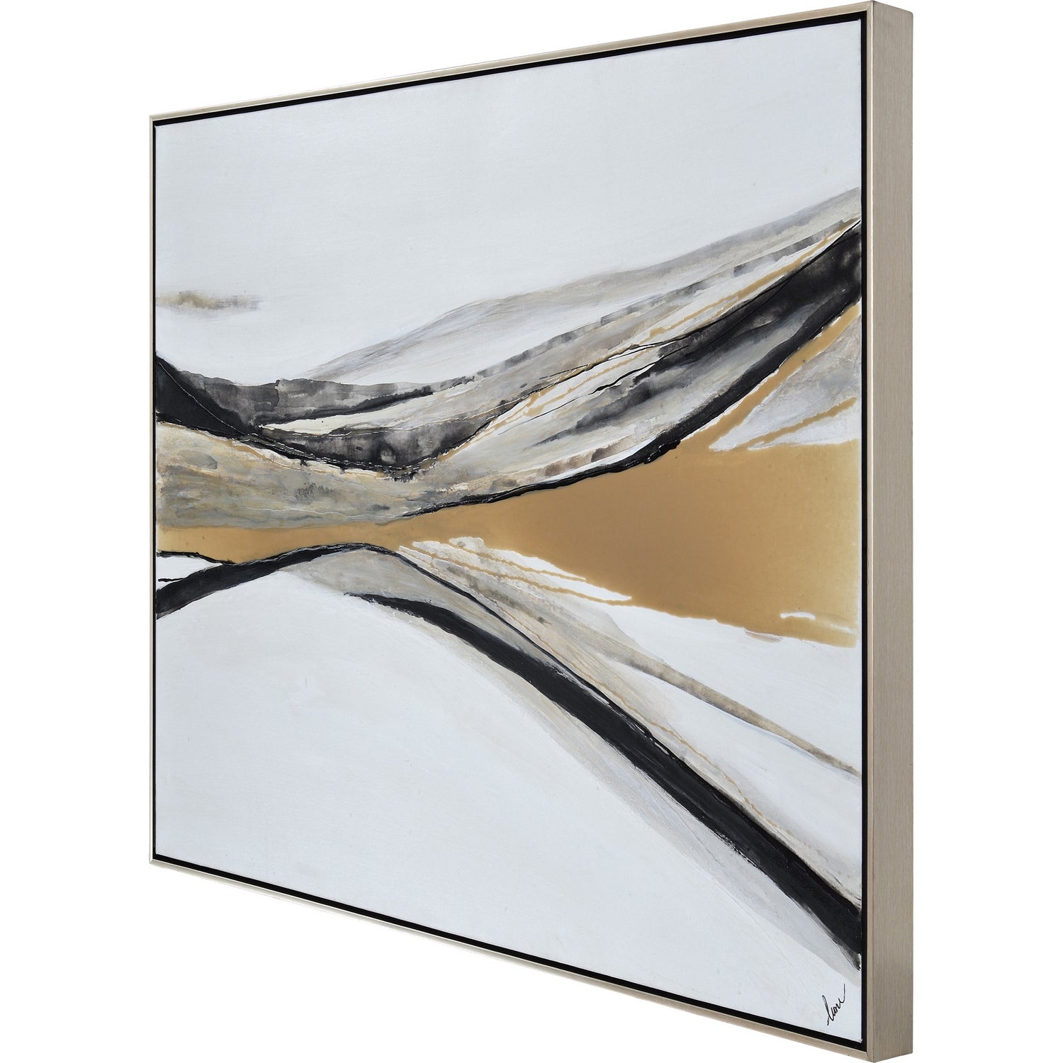 Movement and shine make this a special piece for your art collection. The hand painted canvas features glossy accents to draw your eye in. The silver champagne floating frame give this art a light and fluid feeling.