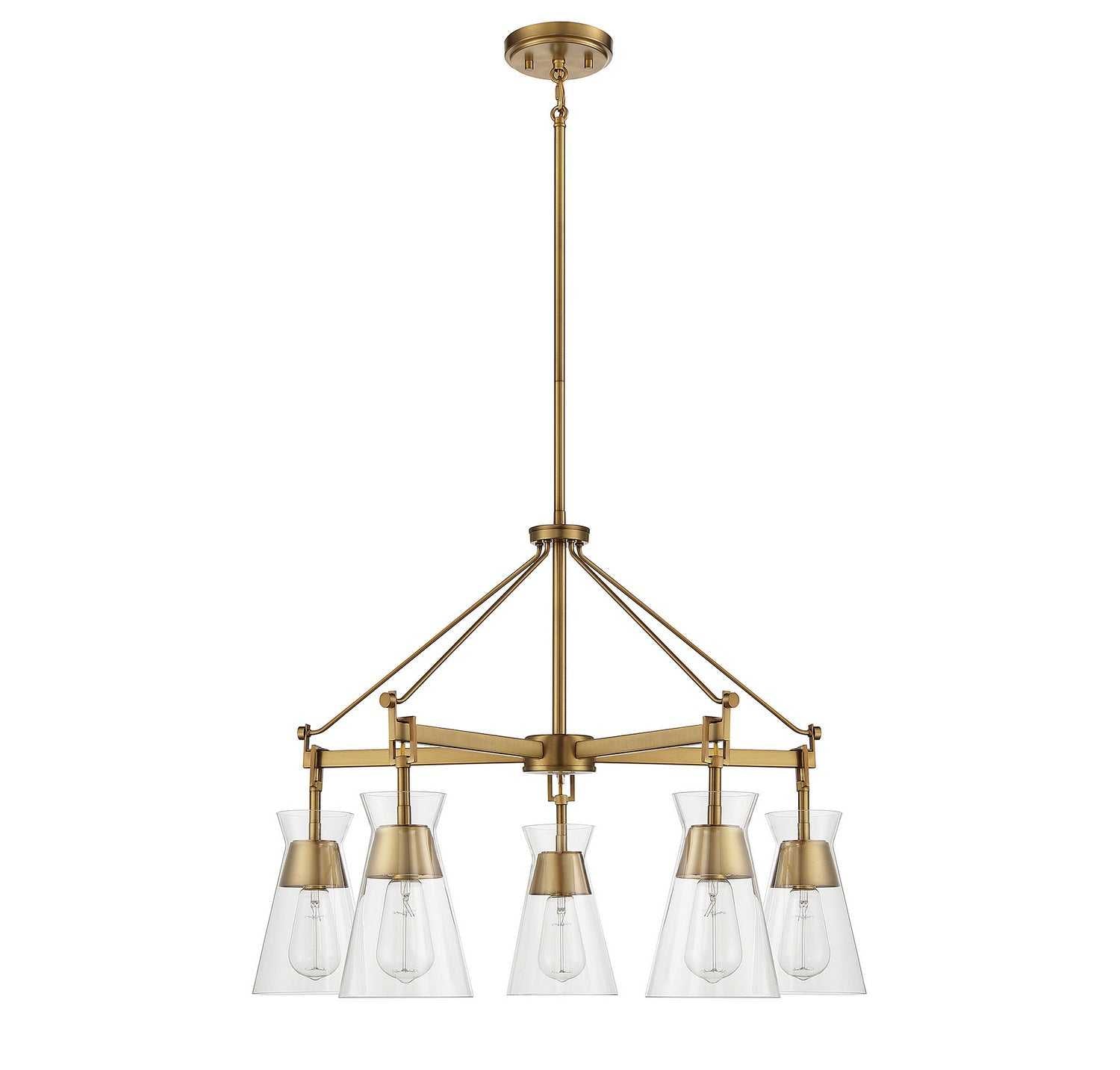 Lakewood Five Light Chandelier in Warm Brass Savoy House
