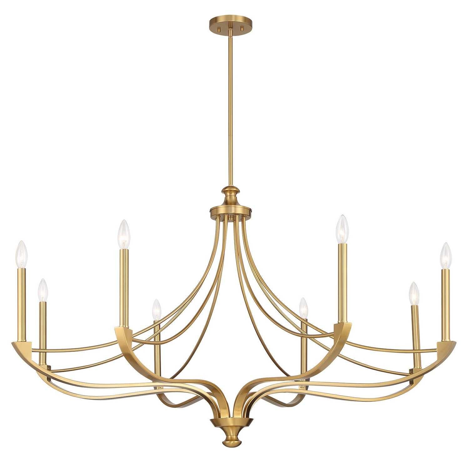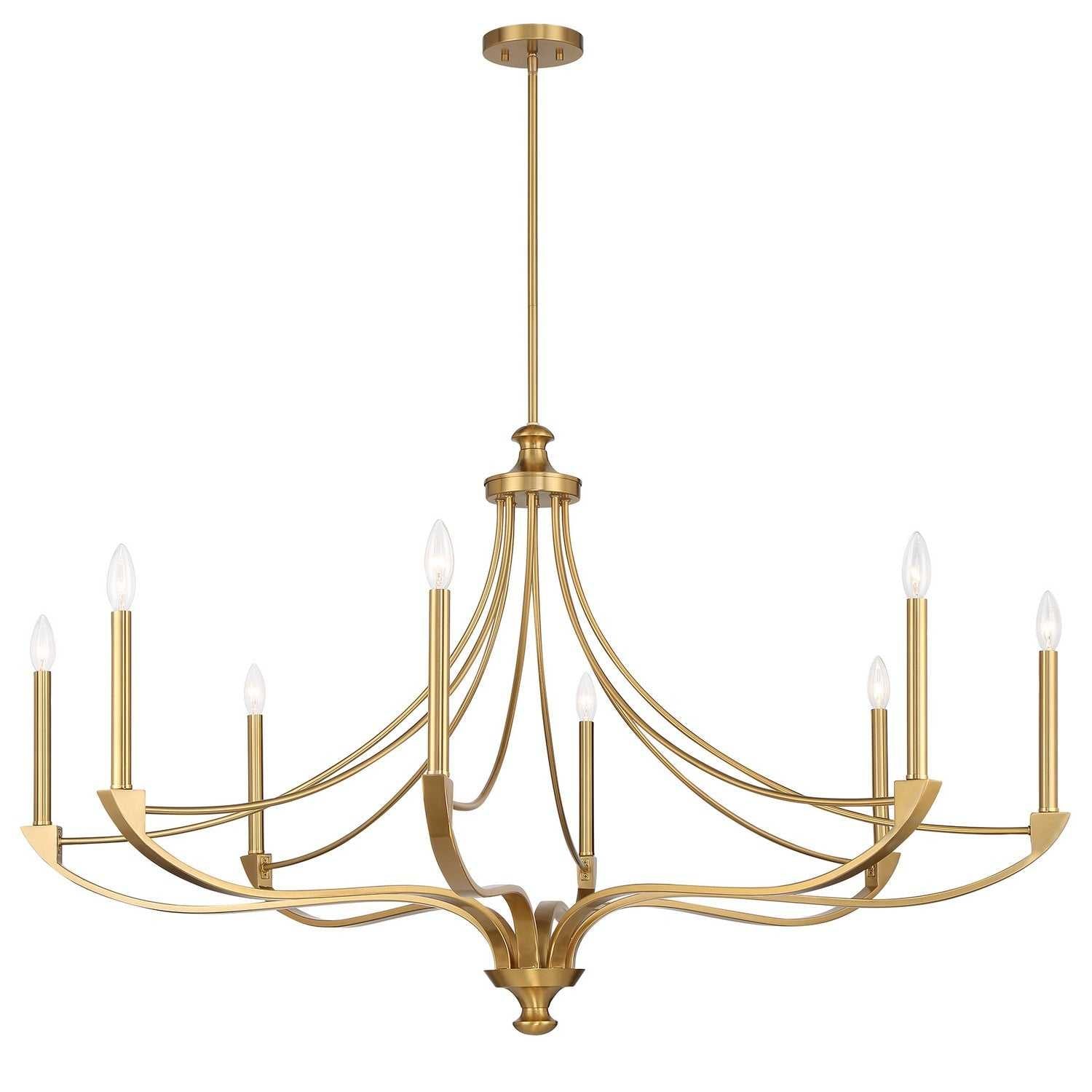 This Savoy House Preserve 8-light chandelier is an excellent choice for brightening up a large space. Its elegantly curving arms bring lots of style without being too bulky. The Warm Brass finish is pleasing and the 50" width means it will make a big impression. Preserve has an adjustable height ranging from 30" to 84". Comes with four 12" downrods and one 6" downrod. It uses eight candelabra size bulbs of up to 60 watts per bulb. Bulbs not included.