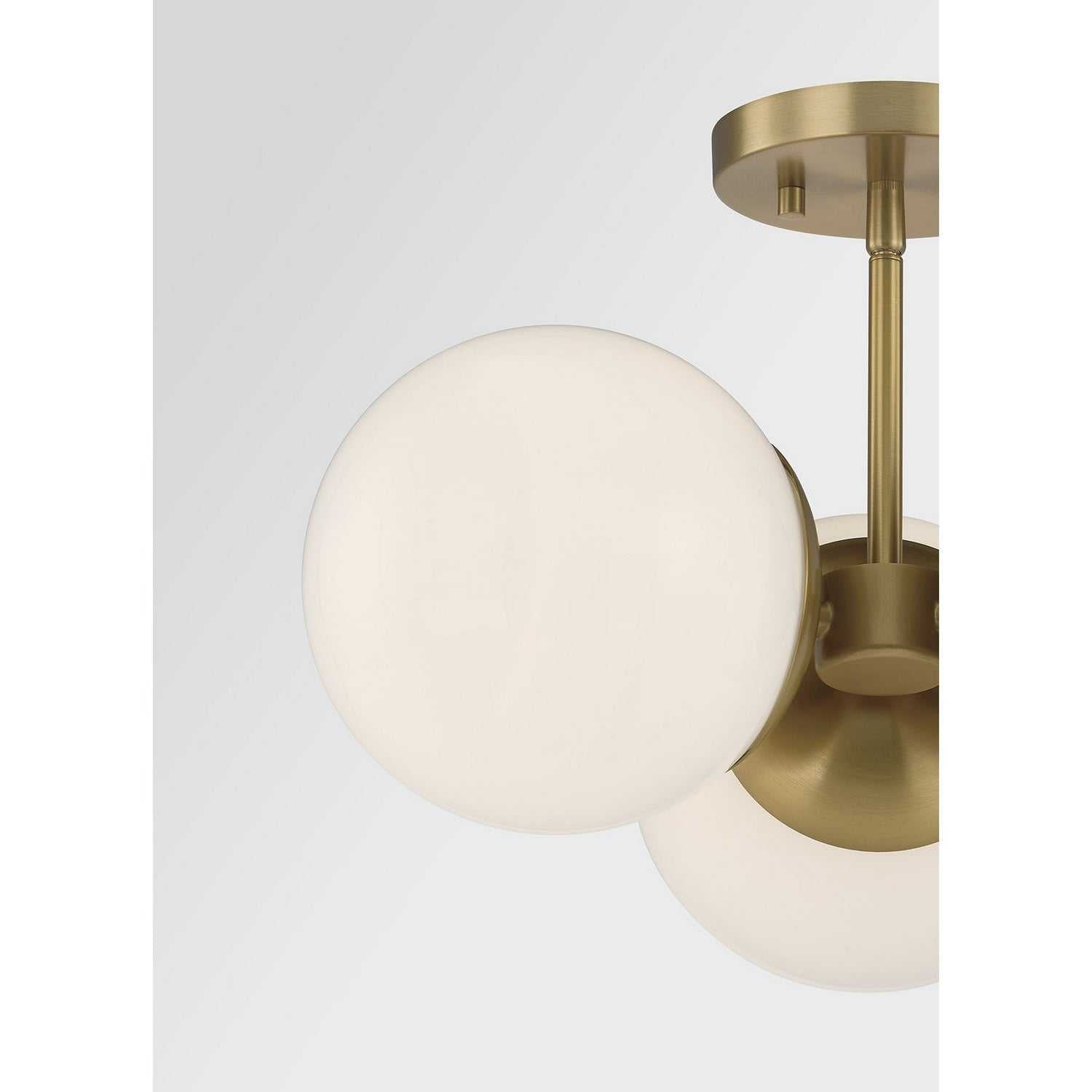 The Savoy House Turin 3-light chandelier captures the spirited essence of mid-century modern design through award-winning interior designer Dann Foley's signature lens of sophistication. A trio of opal glass orbs radiates gentle, modern elegance, complemented by a Warm Brass finish that brings rich depth. With the flexibility to install as either a hanging light or a ceiling mount, Turin adapts effortlessly to the needs of your space. It is 12" in height and 17" in width. It uses three standard size bulbs of up to 60 watts per bulb. Bulbs not included. Comes with four 12" downrods and one 6" downrod.