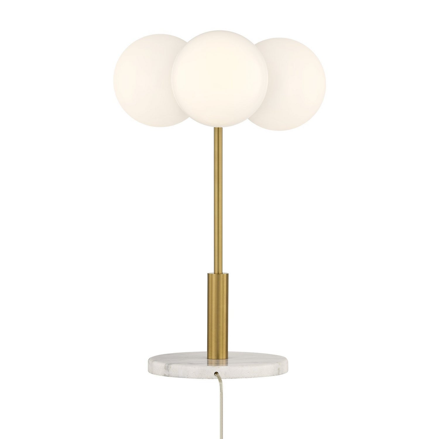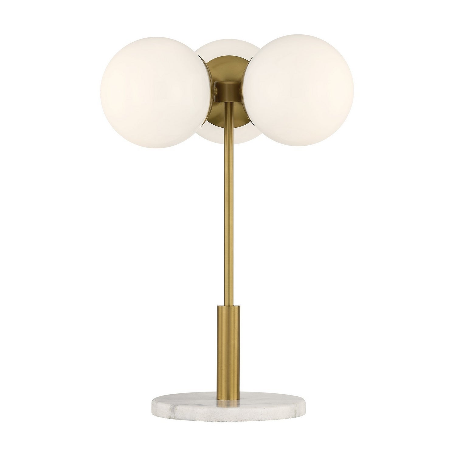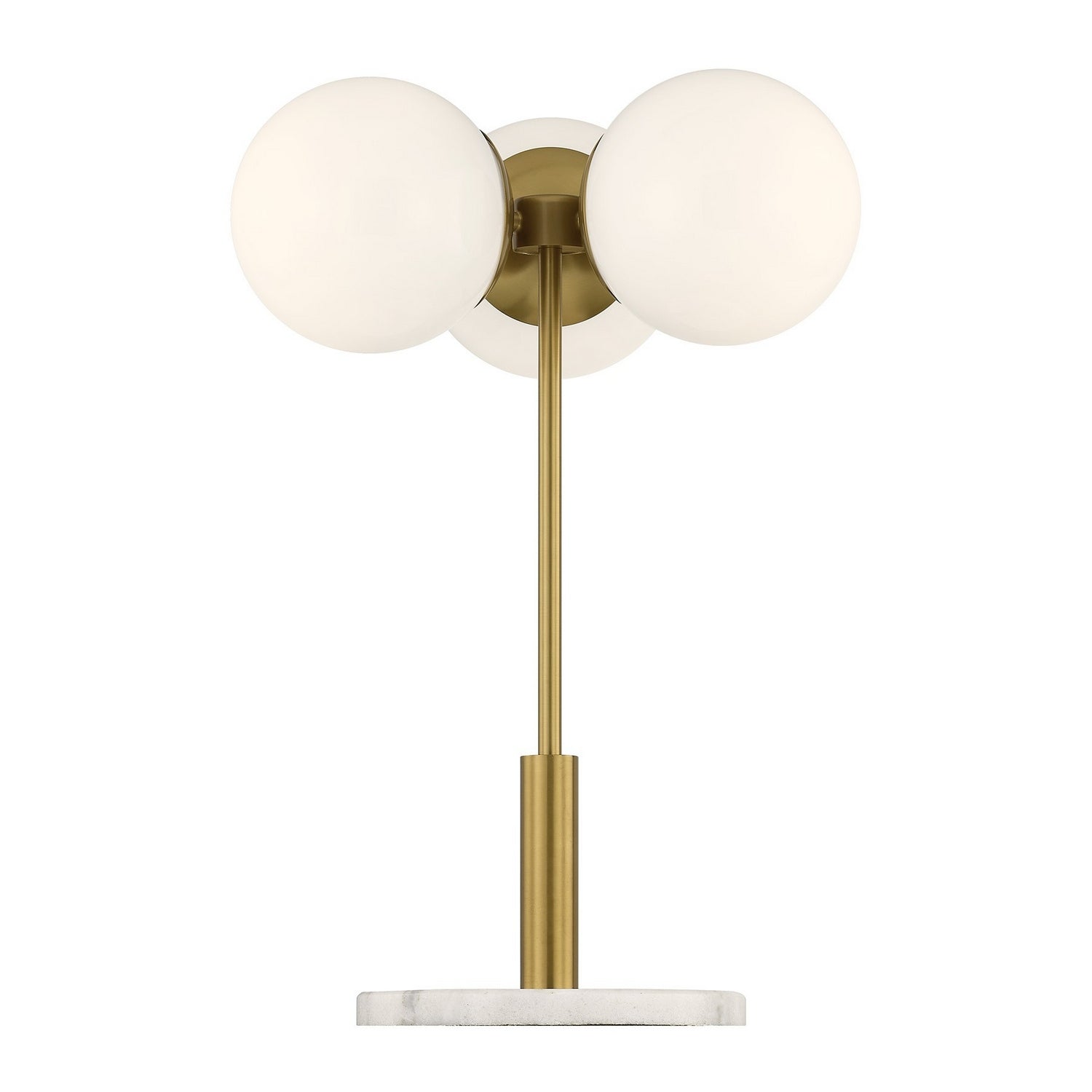 The Savoy House Turin 3-light table lamp, designed by award-winning designer Dann Foley, channels timeless mid-century modern poise. Smooth opal glass globes float gracefully above a genuine marble base, creating a sculptural silhouette that feels both iconic and current. Finished in Warm Brass, Turin casts a welcoming light while adding instant design credibility to your space. Turin is 24" in height and 17" in width. It uses three standard size bulbs of up to 60 watts per bulb. Bulbs not included.