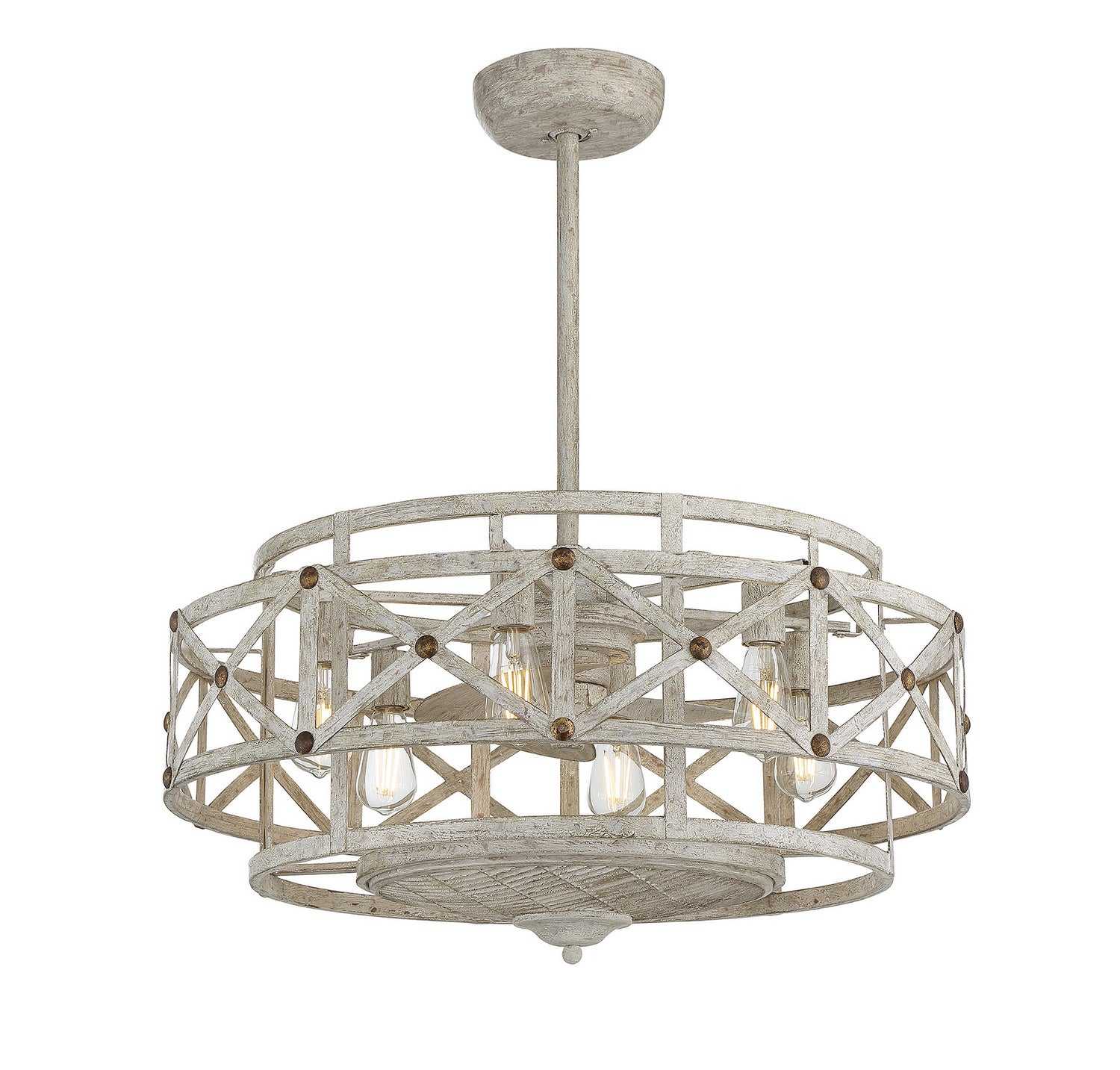 The beautiful Savoy House Colonade 6-light Fan D'Lier has a bonus benefit. In addition to serving as a fashion-forward chandelier in a Provence finish with Gold accents, Colonade is equipped with a functional ceiling fan cleverly concealed within its 15.7" high x 29.38" wide frame. Illumination is provided by six standard size bulbs.