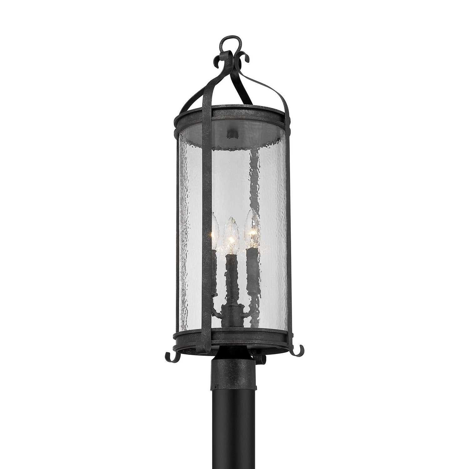 The Savoy House Preston 3-light outdoor post light delivers authentic traditional elegance with beautiful textural depth. Clear pebbled glass adds shimmering visual interest while refined details enhance its classic stature. The Iron Oxide finish introduces rich, heritage-inspired character through distressed texturing. Preston is 26.5" in height and 10.5" in width. Uses three candelabra size bulbs of up to 60 watts each (bulbs not included). Wet area rated.