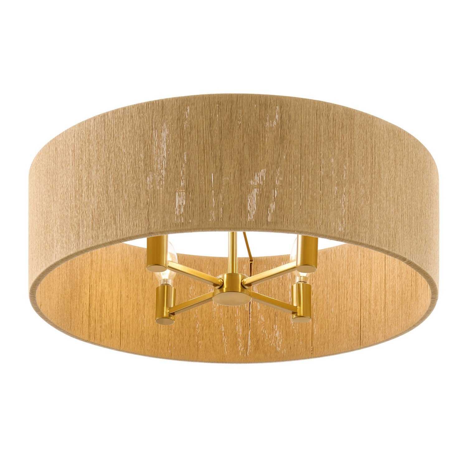 The Savoy House Maynard 4-light flush mount boosts the style and illumination of any space. Its shade is intricately woven with natural rope, infusing your room with relaxed organic style. The Warm Brass finish adds a hint of glamour. Maynard is 9.38" in height and 22" in width. It uses four candelabra size bulbs of up to 60 watts per bulb. Bulbs not included.