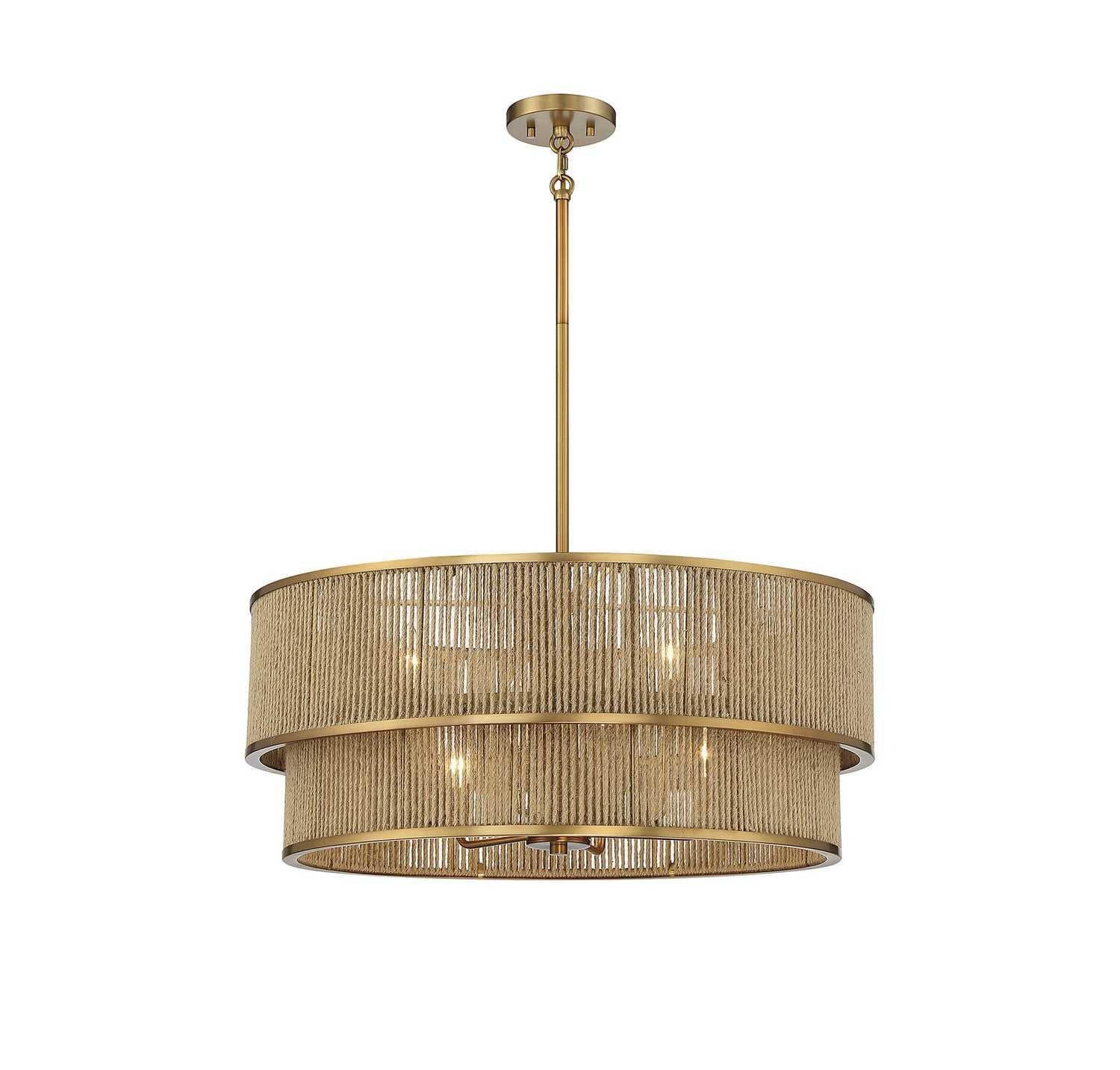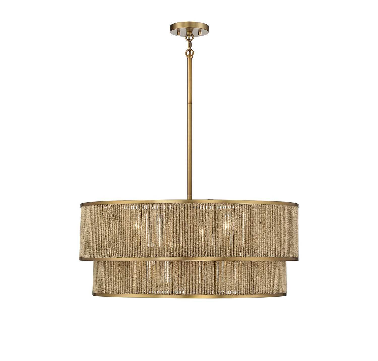 Ashburn Six Light Pendant in Warm Brass and Rope Savoy House
