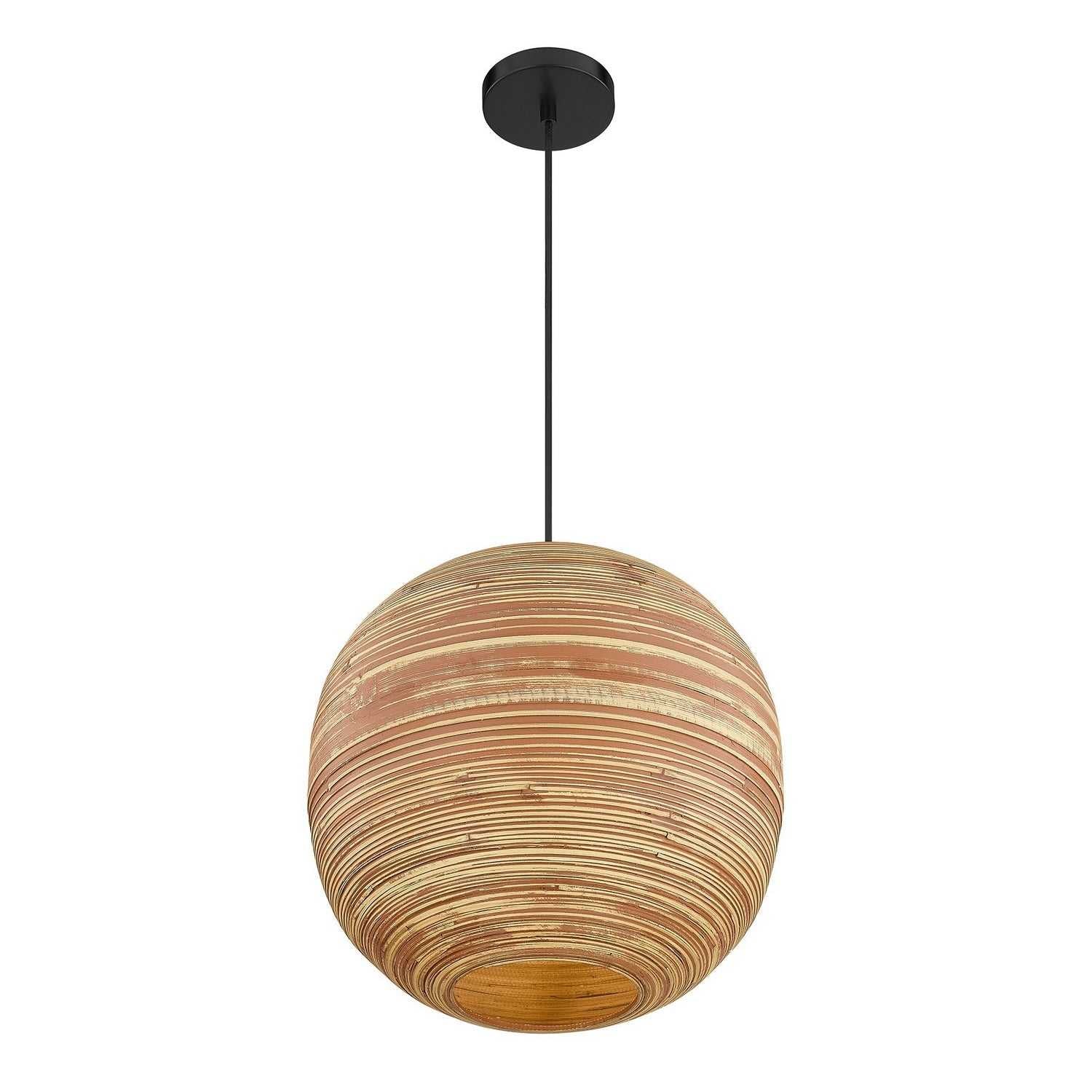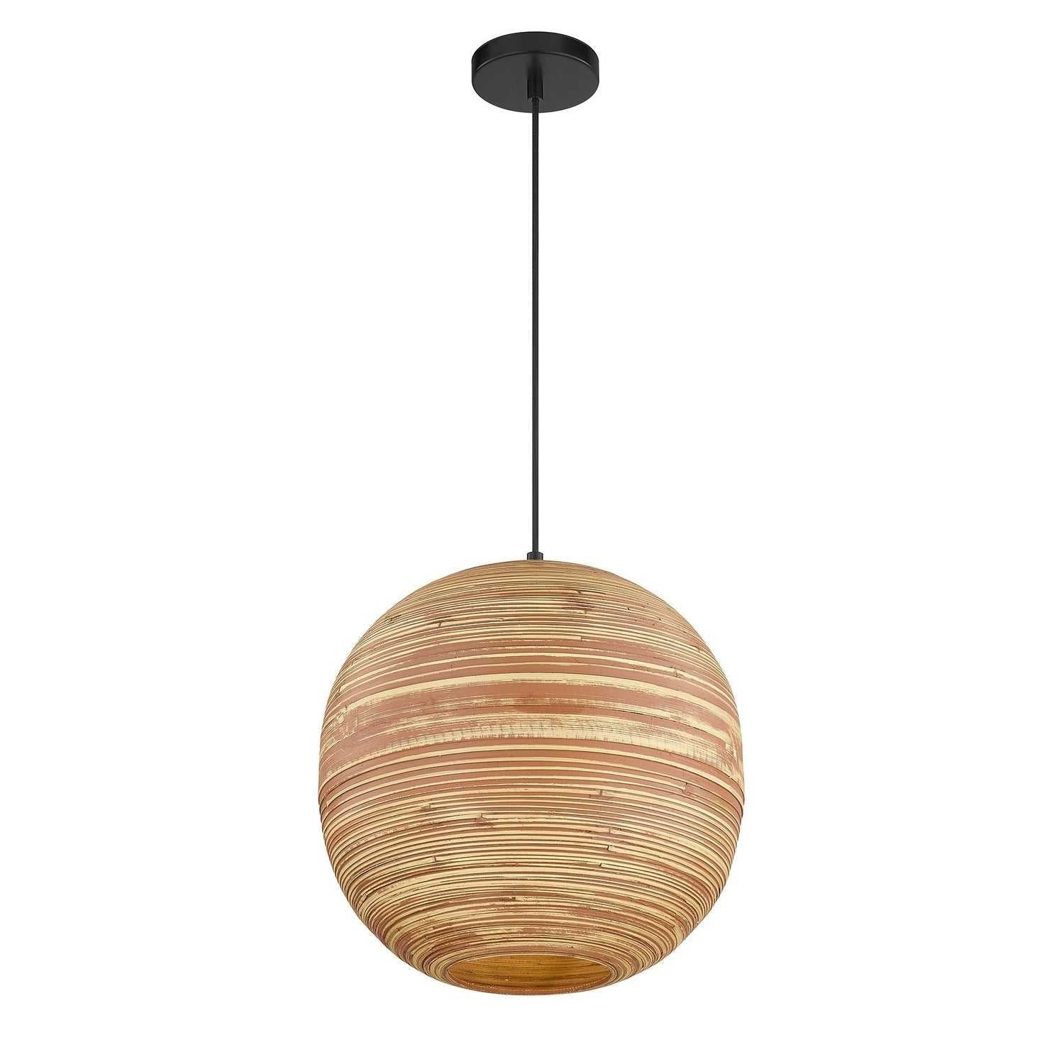 Illuminate your home with the serene, nature-inspired style of the Savoy House Pharr 1-light pendant. Its globe-shaped spun bamboo shade adds warmth and soft texture, paired with Matte Black accents that provide a crisp, modern contrast. Pharr is 16" wide and has an adjustable height ranging from 13" to 133". It uses one standard size bulb of up to 60 watts. Bulb not included. Comes with 120" of hanging cord.