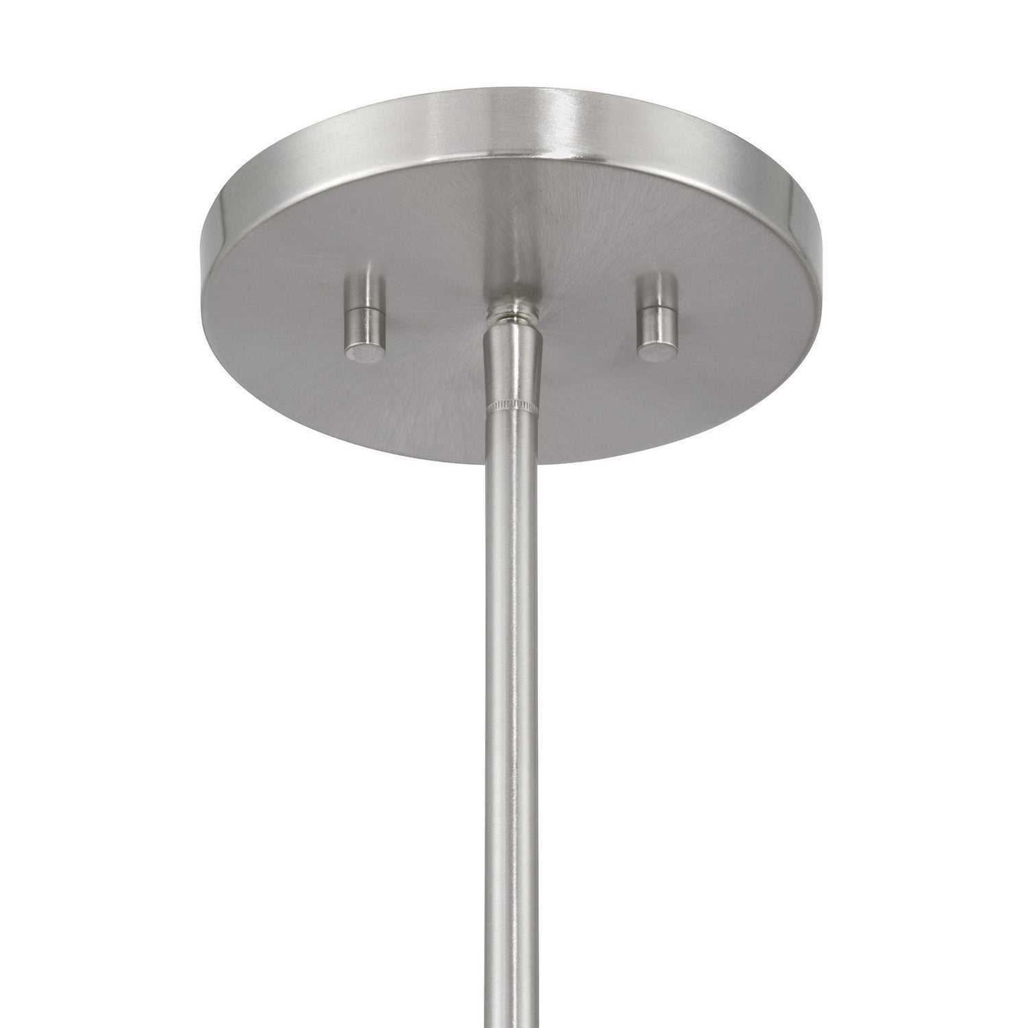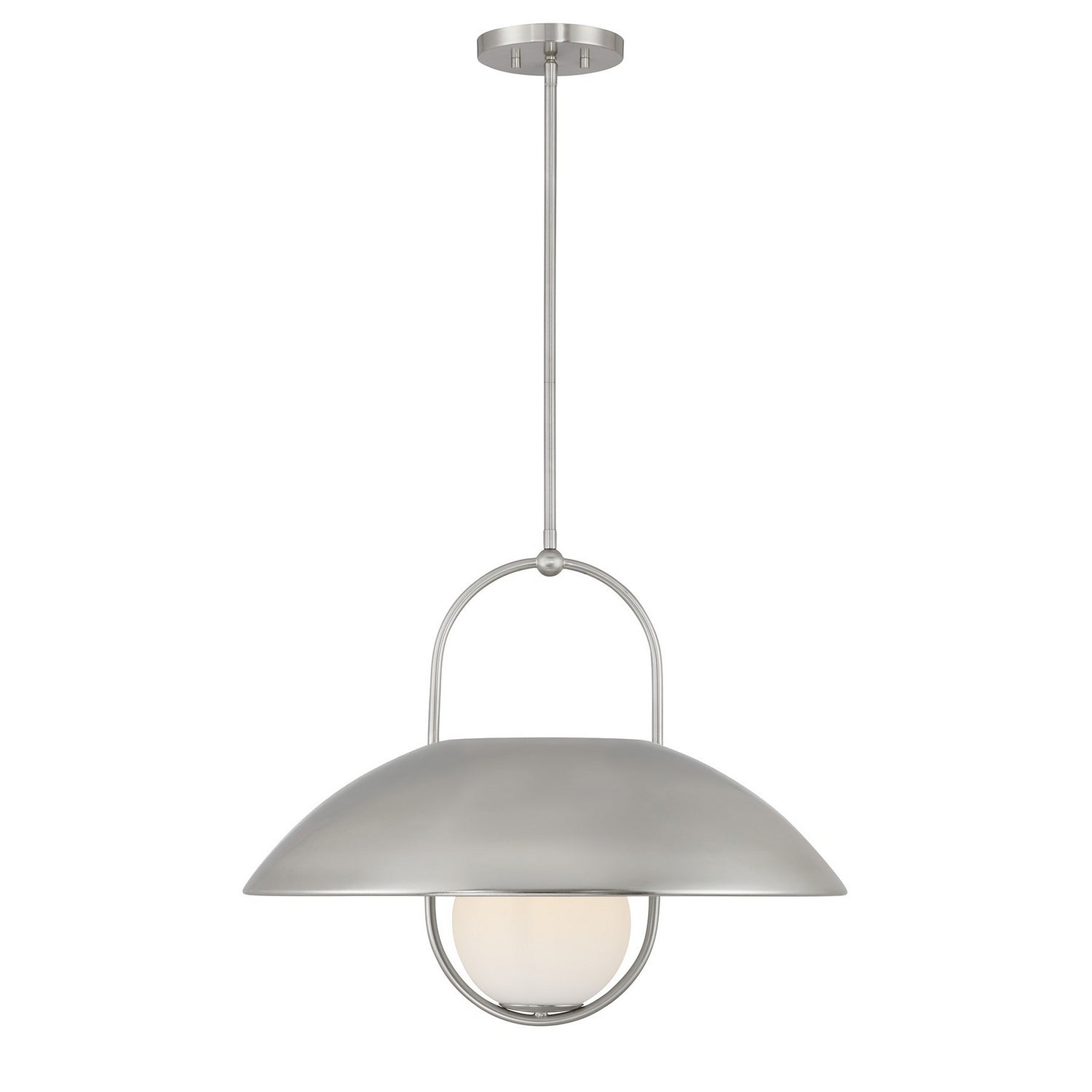 The Savoy House Lehigh 1-light pendant captures modern geometry with striking ease. A glowing orb of white opal glass sits on a clean oval frame, all topped by a simple shade that directs light with precision while remaining open above. The Satin Nickel finish adds cool sophistication and a contemporary edge. Lehigh is 22" in width and has an adjustable height ranging from 18.13" to 72.13". It uses one standard size bulb of up to 60 watts. Bulb not included. Comes with four 12" downrods and one 6" downrod.