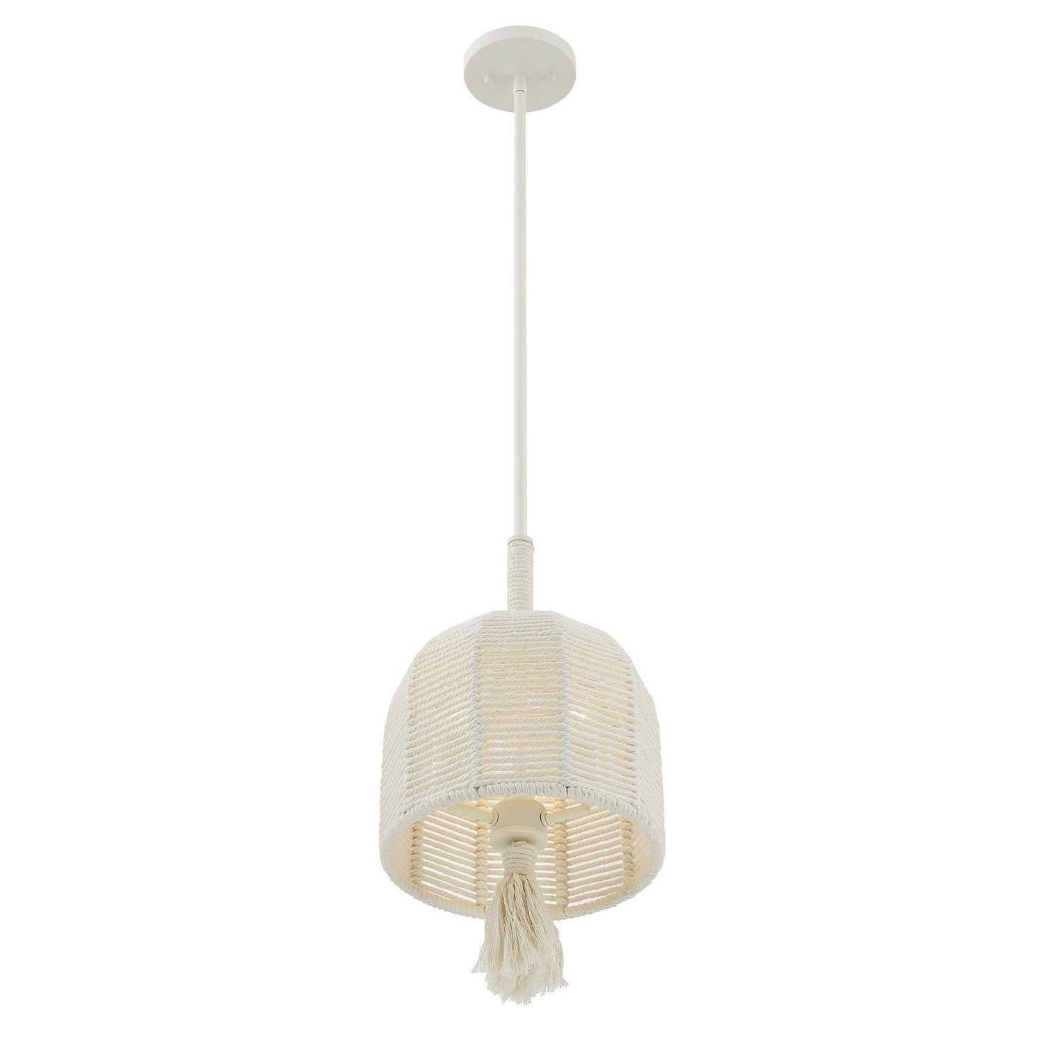 The Savoy House Lunara 3-light pendant was designed by award-winning interior designer and TV host Breegan Jane. With its woven shade and tassel crafted from cotton rope, it brings a warm, coastal ease inspired by Breegan's California roots. The Painted White Alabaster finish is a flawless match for the cotton rope. Lunara is 10" in width and has an adjustable height ranging from 17" to 71". It uses three candelabra size bulbs of up to 60 watts per bulb. Bulbs not included. Comes with four 12" downrods and one 6" downrod.
