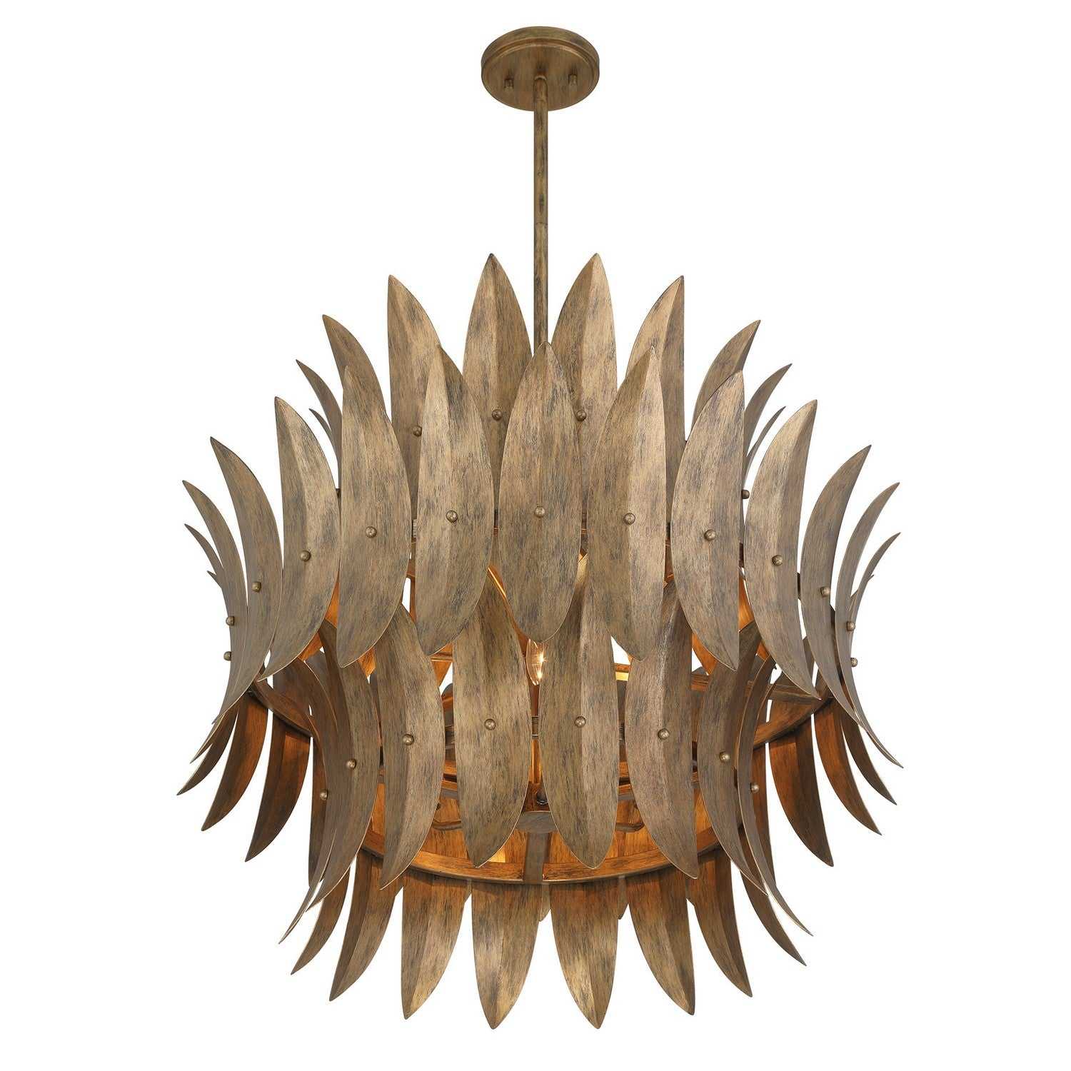 The Savoy House Sanctuary 6-light pendant was designed by Breegan Jane, an award-winning interior designer and TV host. Sanctuary is inspired by the idea of spiritual gatherings that take place in nature under the lights above us. It is a dynamic statement piece thoughtfully designed to adorn our homes, our own sacred gathering places. Curving, pointed petals are finished in highly textured Coronado and create a stunning silhouette. Sanctuary is 27.5" in width and has an adjustable height ranging from 24.5" to 78.5". It uses six candelabra size bulbs of up to 60 watts per bulb. Bulbs not included. Comes with four 12" downrods and one 6" downrod.