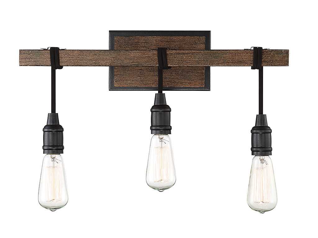 Simple, rustic style is yours with the unique Savoy House Burgess 3-light bath bar. It features little more than bare bulbs suspended from cords wrapped around the bar-shaped structure, finished in Durango, but this minimal look makes a big impact! Bath bar lights are a classic choice for illuminating vanity mirrors in bathrooms big and small, though this fixture could be used in other wall-mounted applications as well. Since the bulbs are exposed, try using stylized bulbs (not included) like tubular shape or Edison style for a different look! The Durango finish pairs nicely with black or bronze hardware, but also can mix with hardware in other finishes. Rustic, industrial and modern farmhouse style spaces are ideal choices for Burgess. When you choose a Savoy House lighting fixture, you can be certain you've selected a piece that will withstand the test of time.